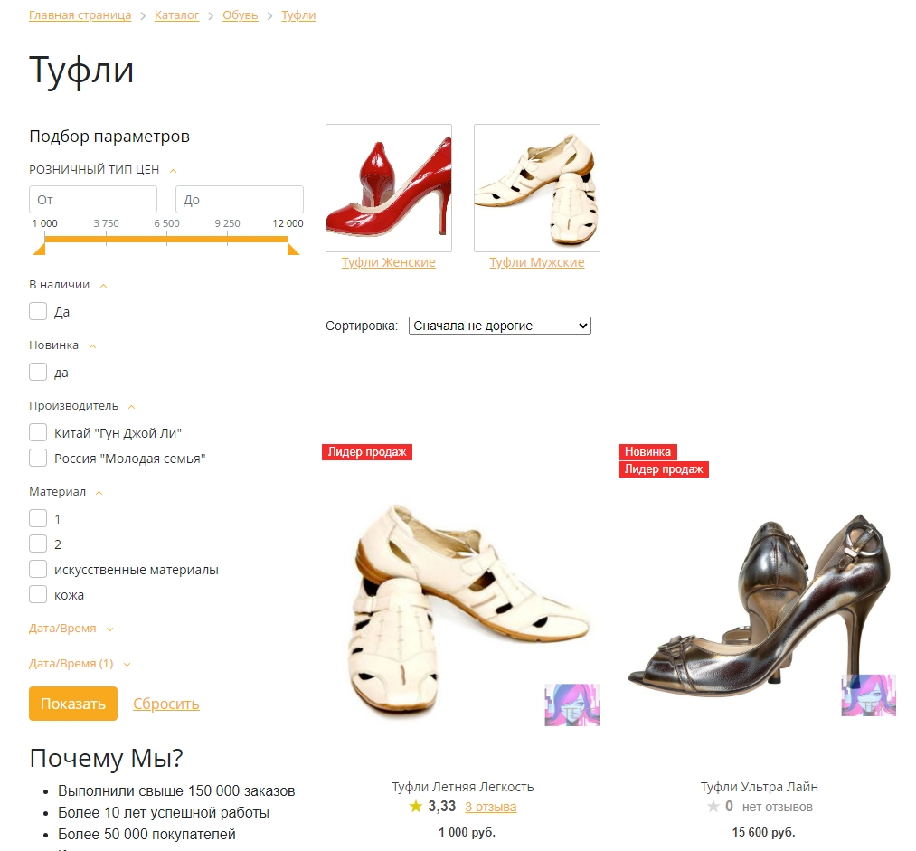 Также эти свойства можно использовать для сортировки товаров.