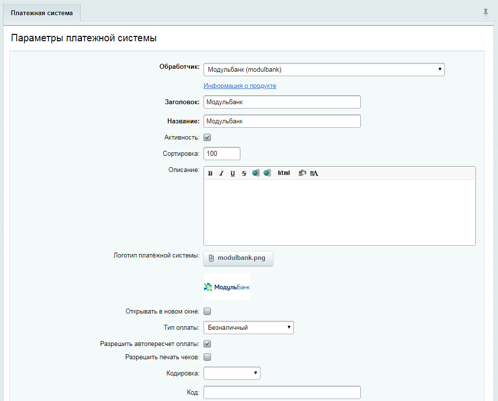 2. Добавьте способ оплаты "Модульбанк"