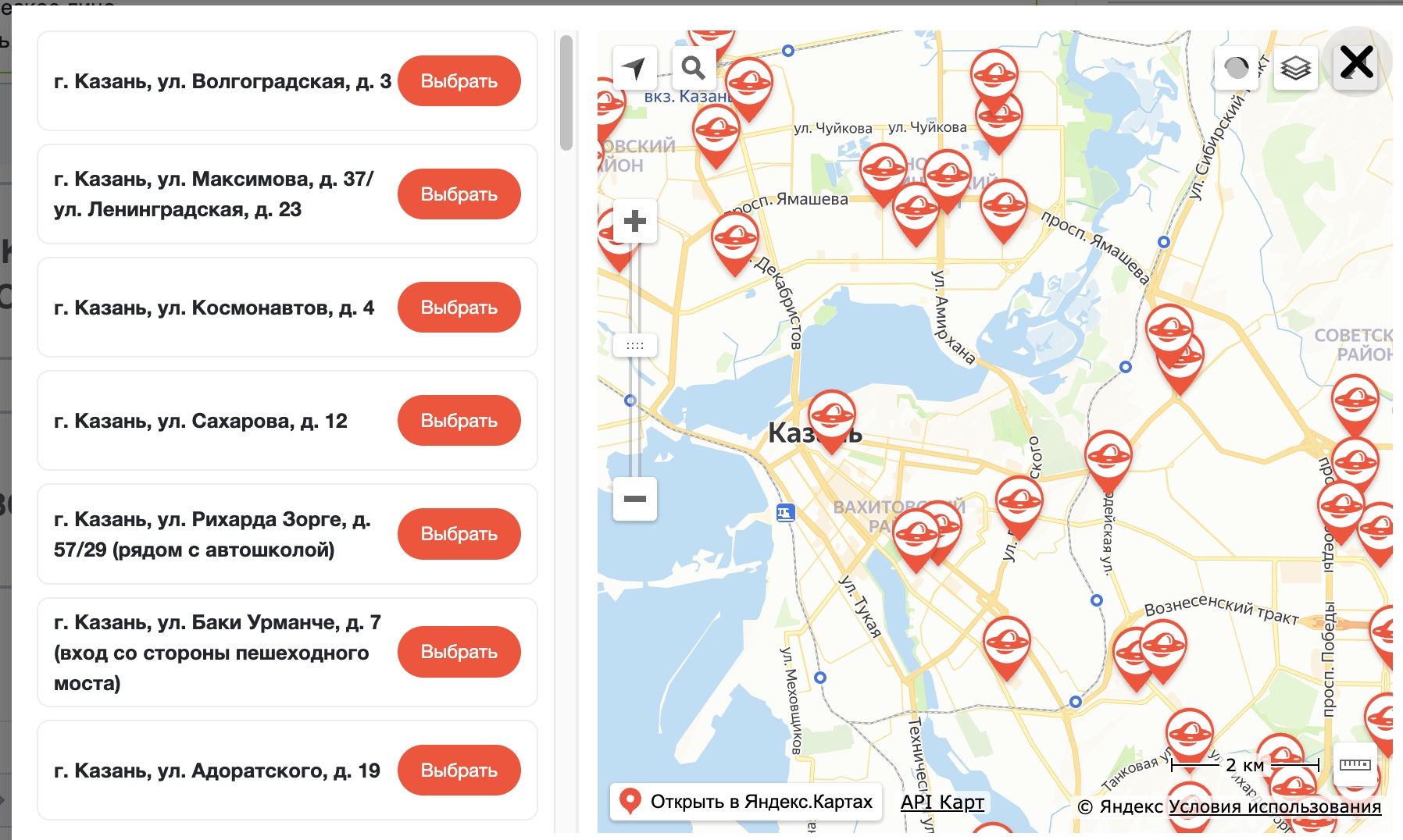 - интеграция в оформление заказа с показом карты выбора пункта выдачи
