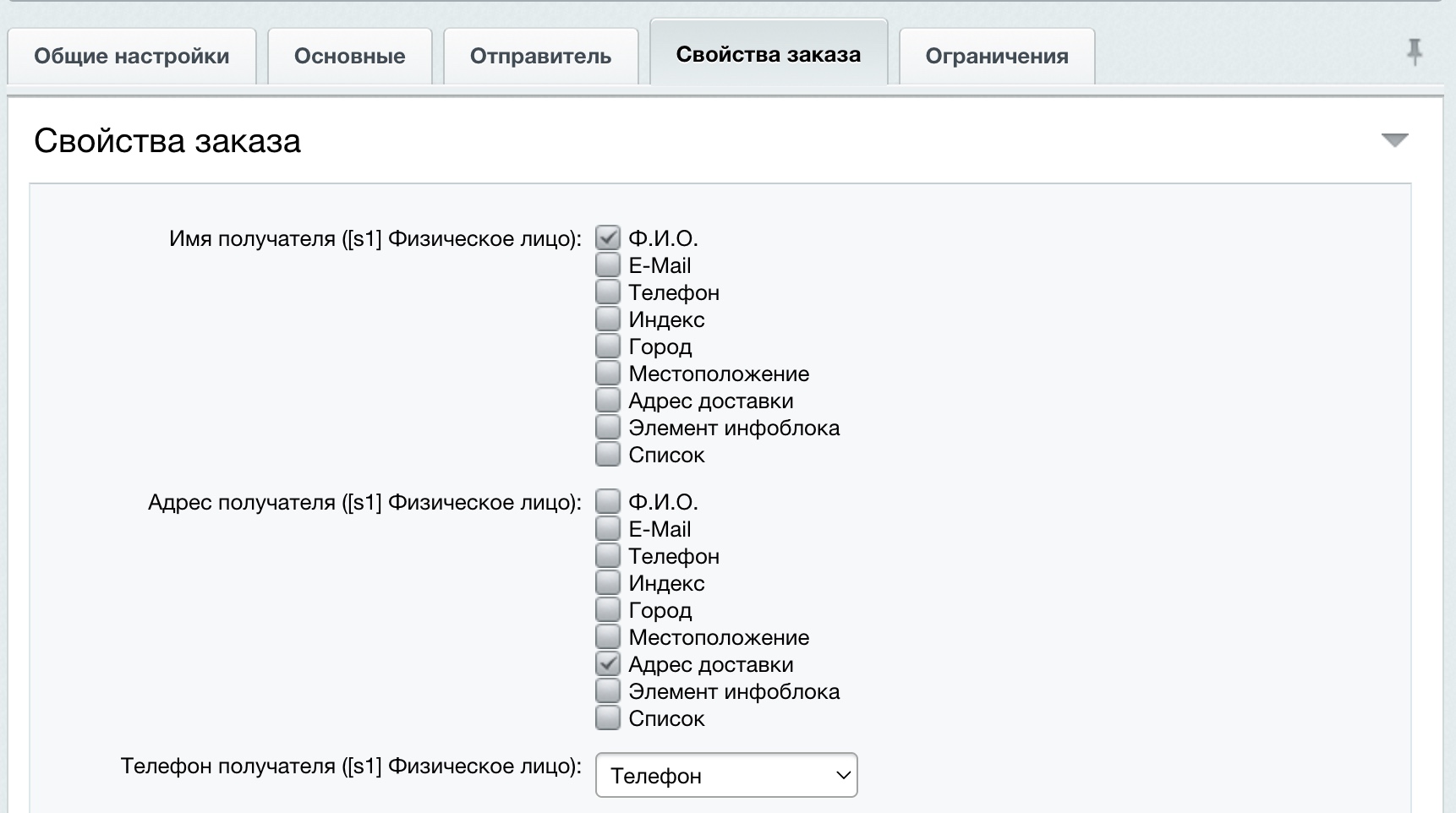 Свойства заказа - соответствие свойств заказа для получения необходимой информации о заказе