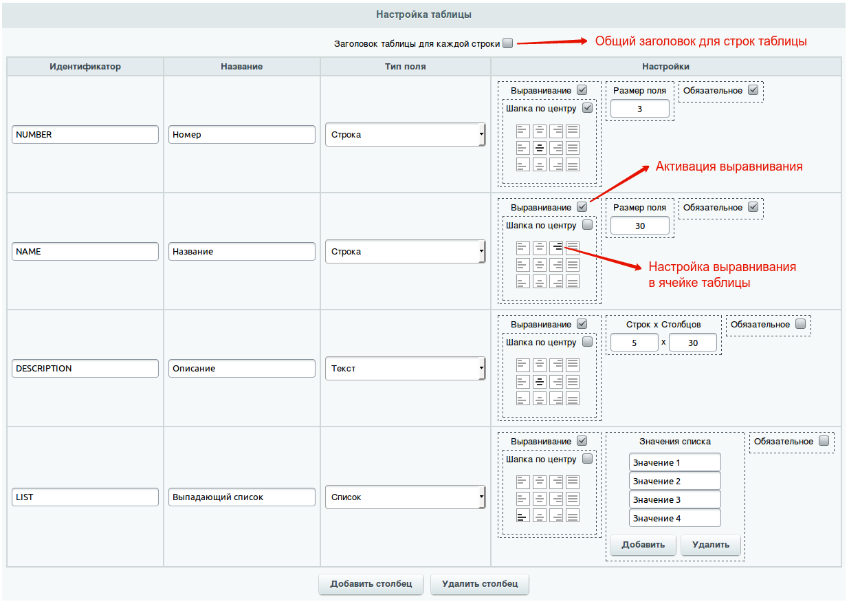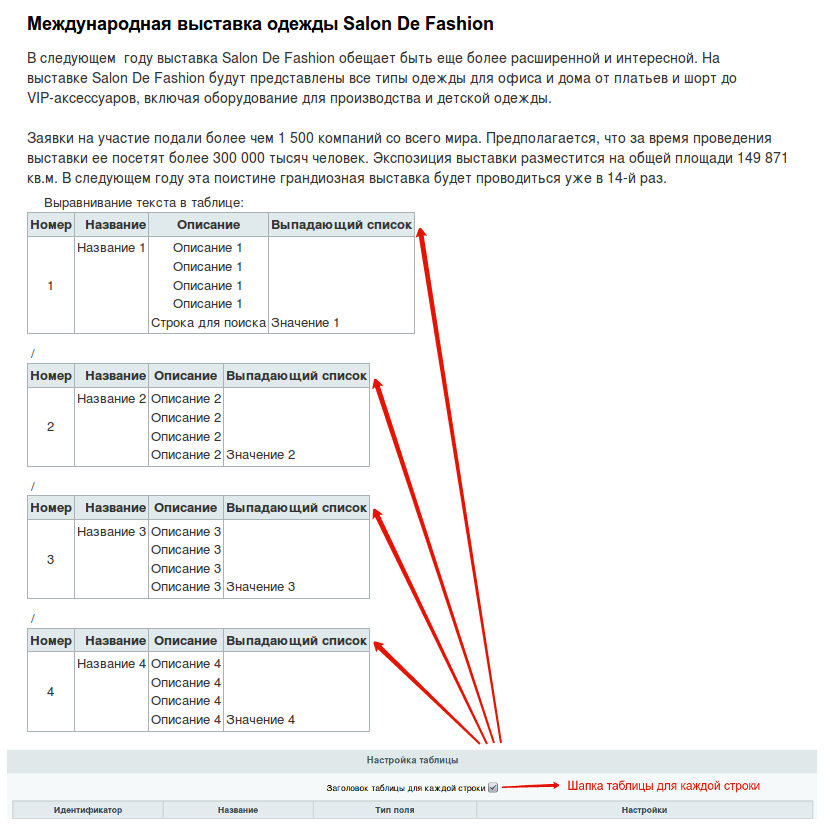Данный модуль позволяет создавать настраиваемые таблицы в элементах инфоблока и в пользовательских полях главного модуля.