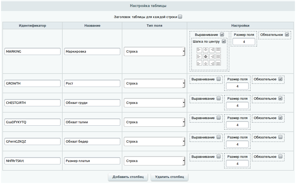- Настройте таблицу