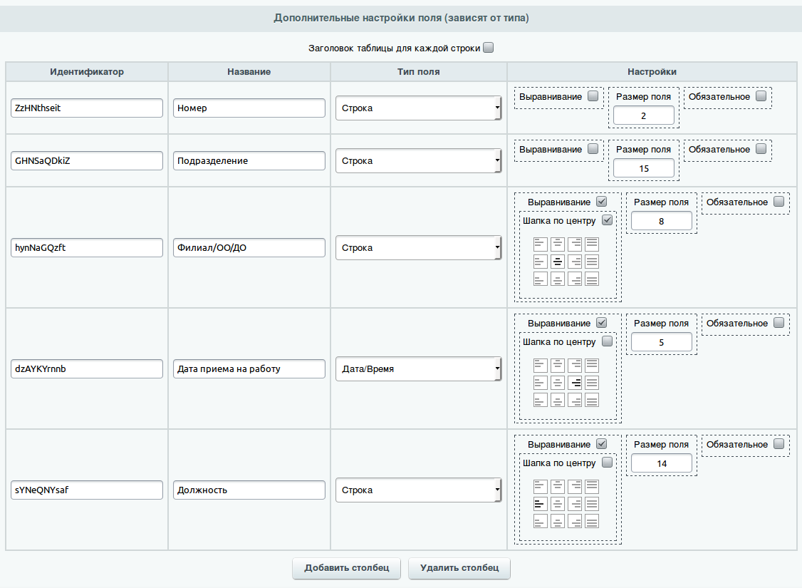 В версии 1.0.4 добавлен новый функционал в таблицы: