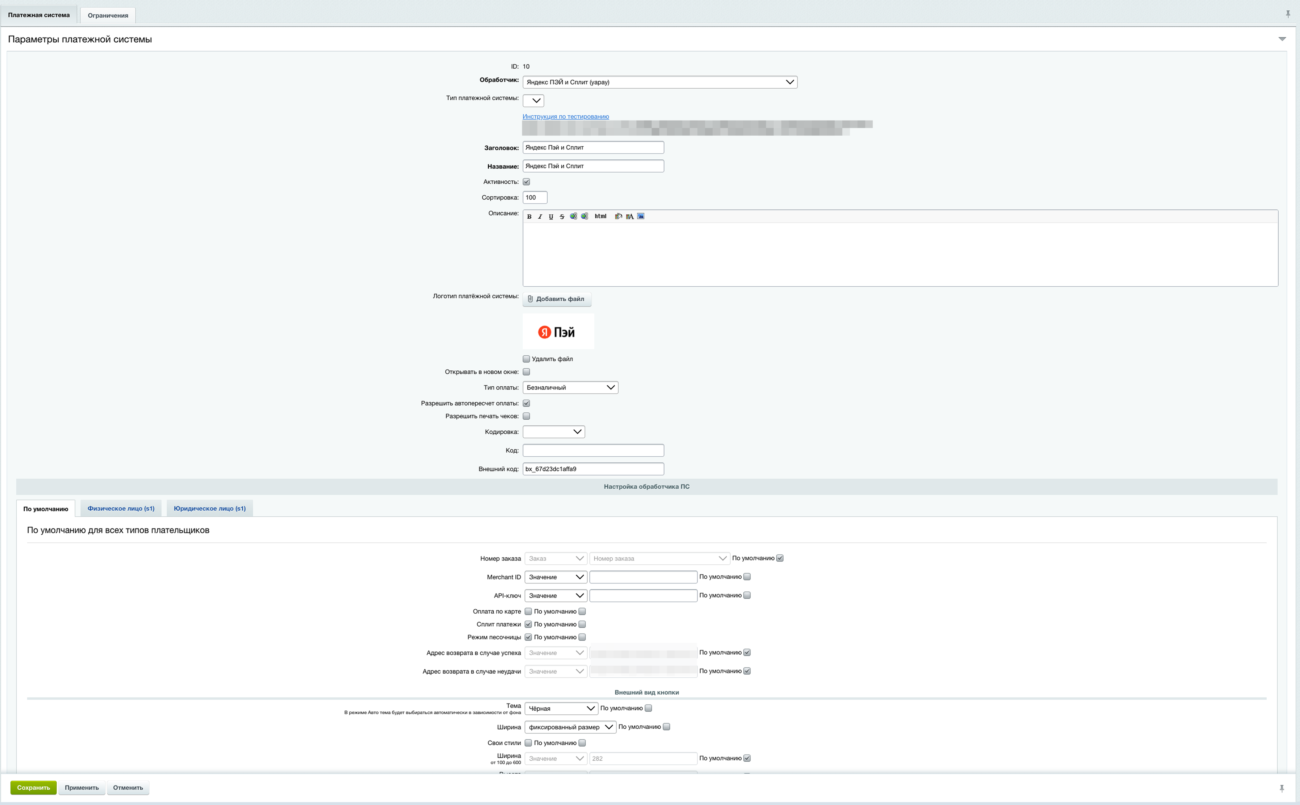 - Выбрать обработчик "Яндекс Пэй и Сплит"