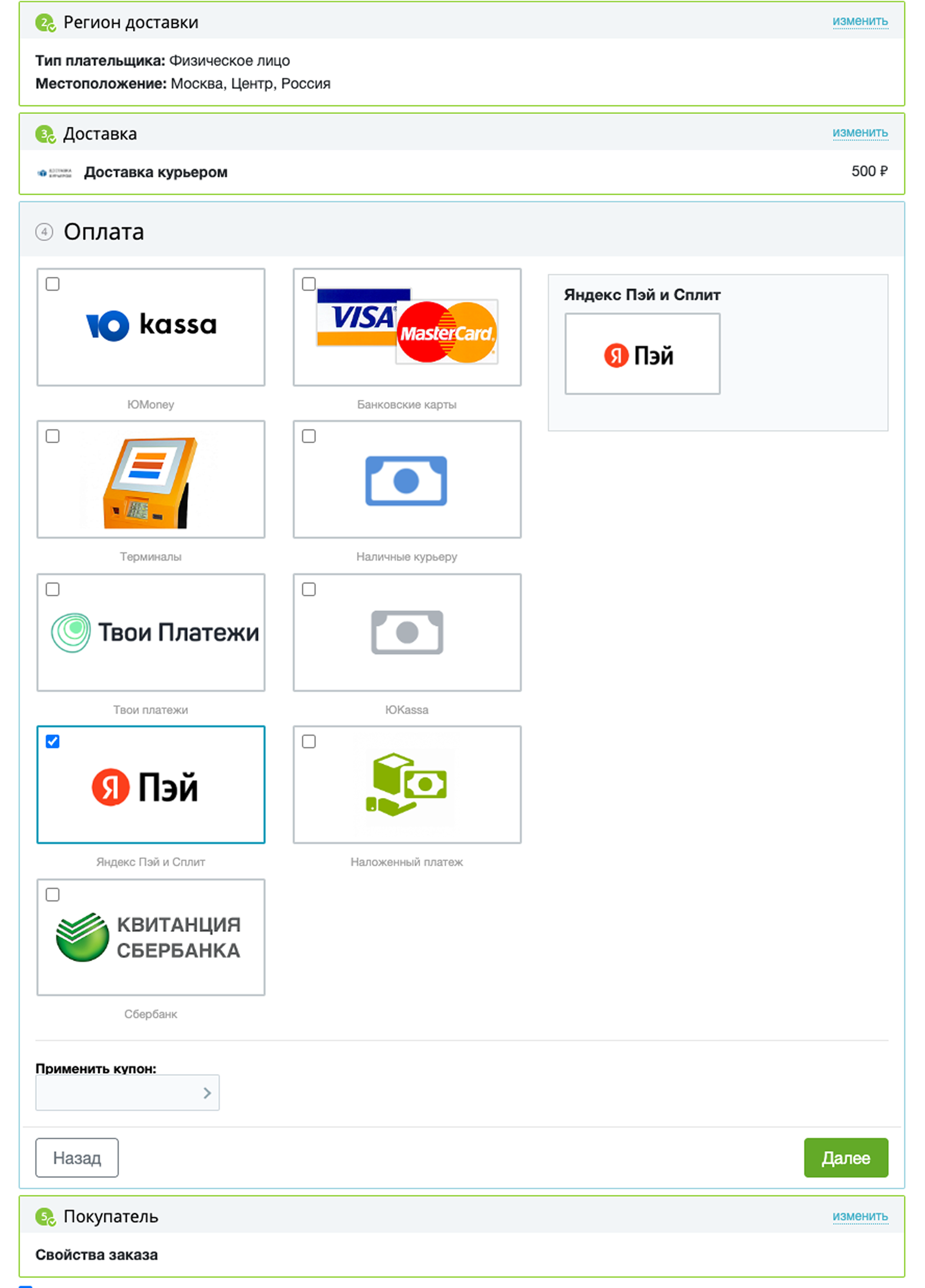 Далее настраиваем модуль для приема платежей через Яндекс Пэй.