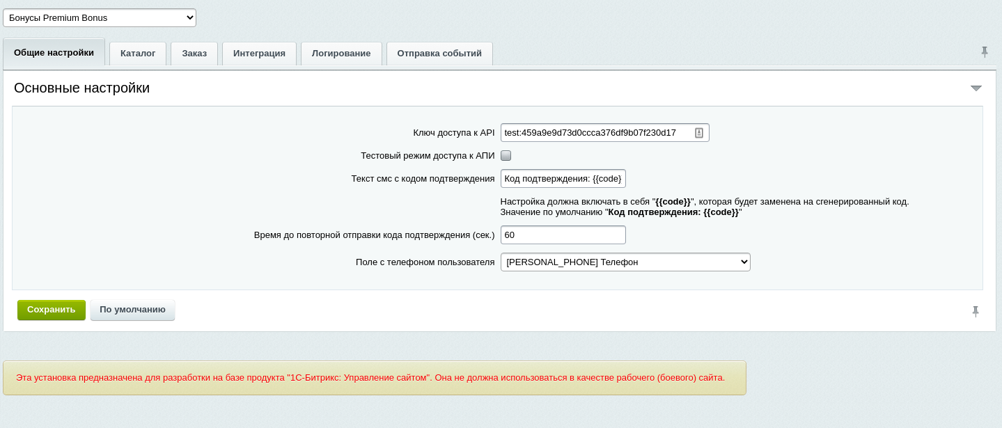 - Укажите ключ доступа к АПИ (получить его можно в личном кабинете).