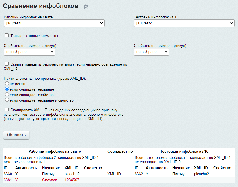 - инструменты для сопоставления товаров - для настройки выгрузки товаров из 1С, когда товары из 1С и на сайте ещё не сопоставлены,