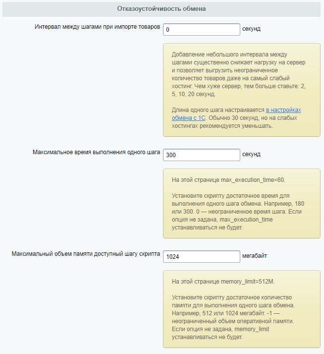 - настройки для повышения отказоустойчивости, - позволяют выгрузить неограниченное количество товаров даже на самый слабый хостинг,