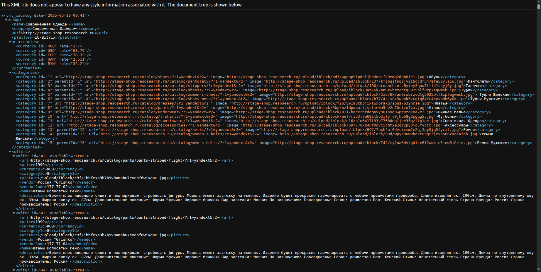 Интеграция с вашим магазином на 1С-Битрикс происходит через специализированный модуль, который автоматически генерирует и обновляет YML-фид с информацией о товарах. Система поддерживает выгрузку всех необходимых атрибутов: названий, цен, изображений, артикулов, характеристик и ссылок на товары.