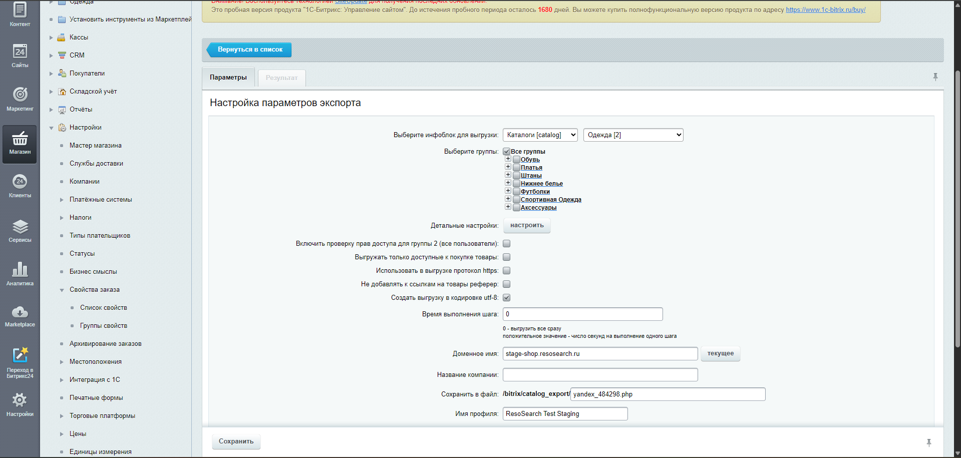 Настройте экспорт согласно инструкции https://docs.resosearch.ru/docs/yml-feed/yml-2-bitrix