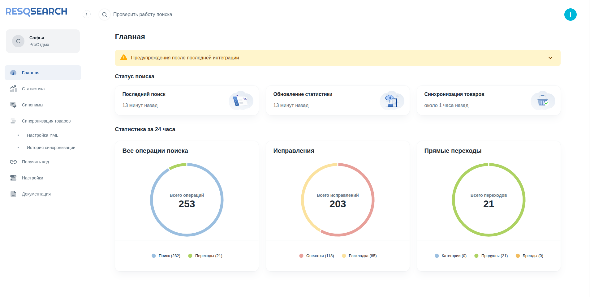 Resosearch значительно улучшает качество поиска на сайте и даёт заметный прирост показателей уже с первых дней использования.