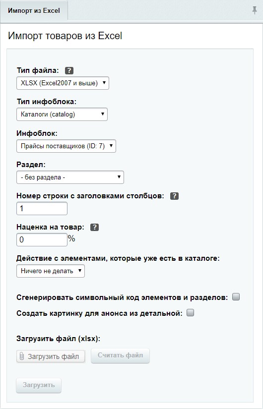 - Модуль загрузки прайсов в формате .xlsx позволит загружать прайсы поставщиков на сайт;