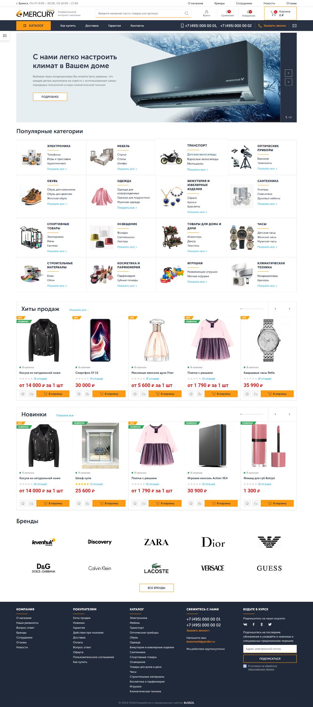 Готовое решение BUSSOL: Mercury обладает широкими функциональными возможностями, удобным интерфейсом и гибкими настройками дизайна. С помощью нашего решения вы сможете создать интернет-магазин для продажи любых товаров, настроить дизайн так как вам нравится, а самое главное - это использование по максимуму возможностей 1С-Битрикс