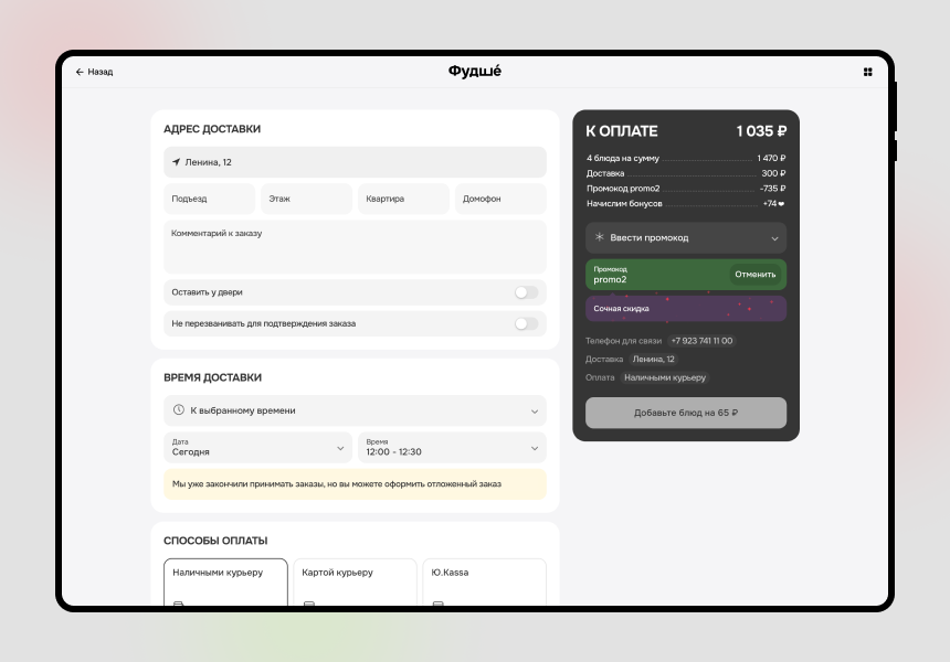 Запускайте онлайн-доставку под ключ — быстро, удобно и функционально! Наше решение разработано специально для ресторанов, кафе, служб доставки пиццы, суши и другой еды. Всё, что нужно для старта — уже внутри.