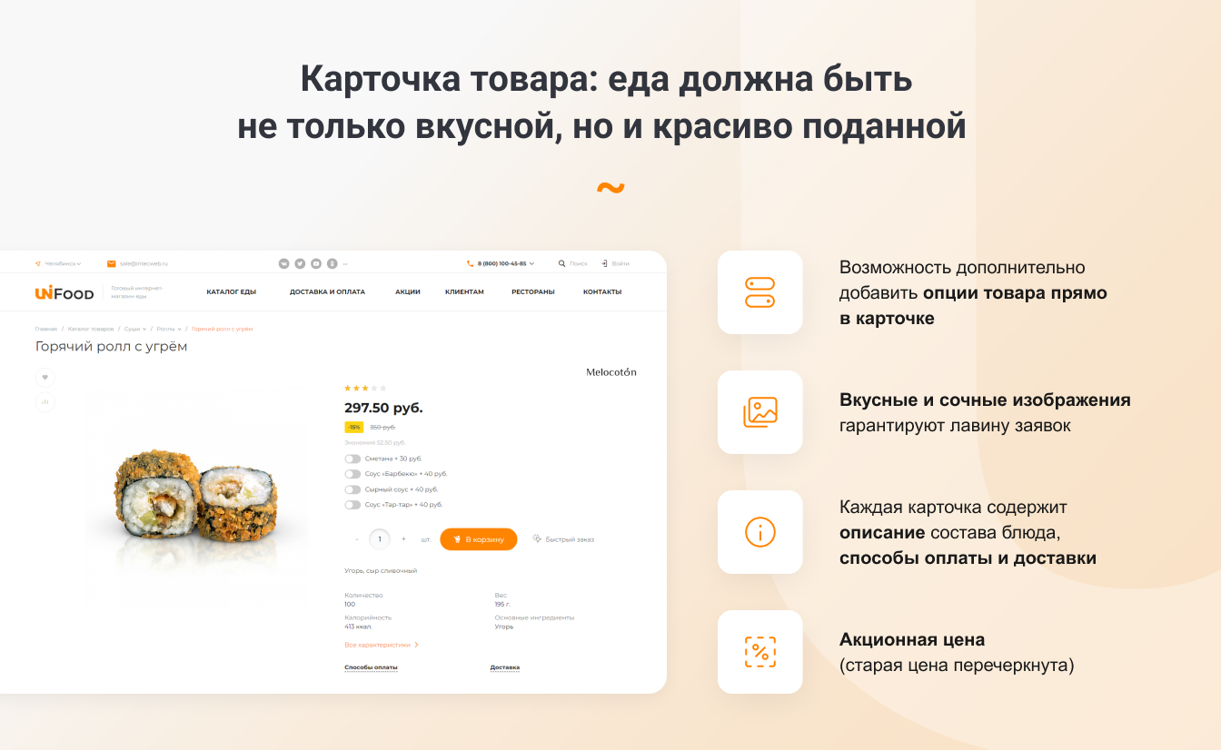 Готовое решение INTEC.Food (Интек ЕДА) идеально подойдет для следующих отраслей: сайт кафе, сайт