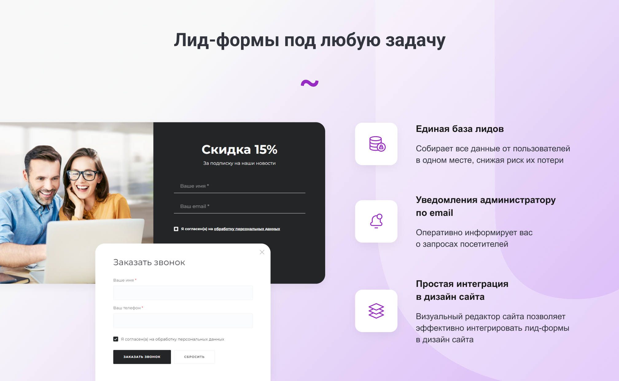Лид-формы, собирайте данные ваших пользователей, формируйте клиентскую базу и управляйте продажами.