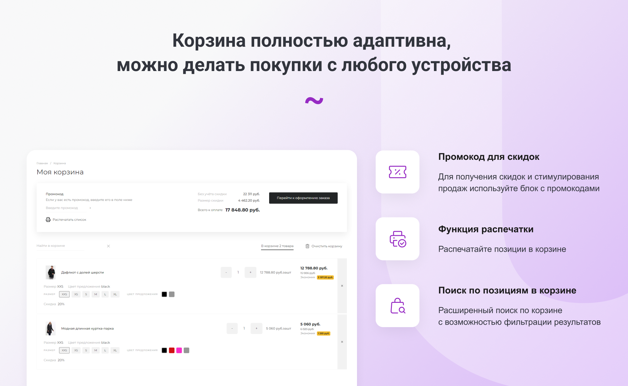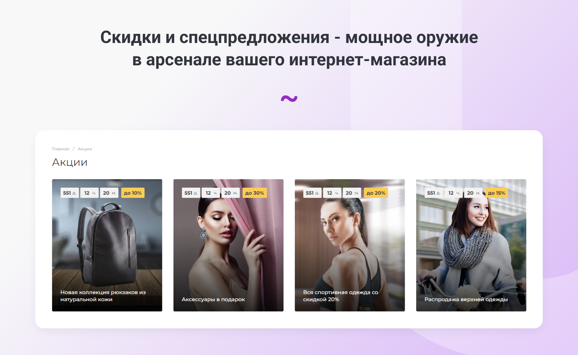 Промокод для скидок - для получения скидок и стимулирования продаж используйте блок с промокодом.