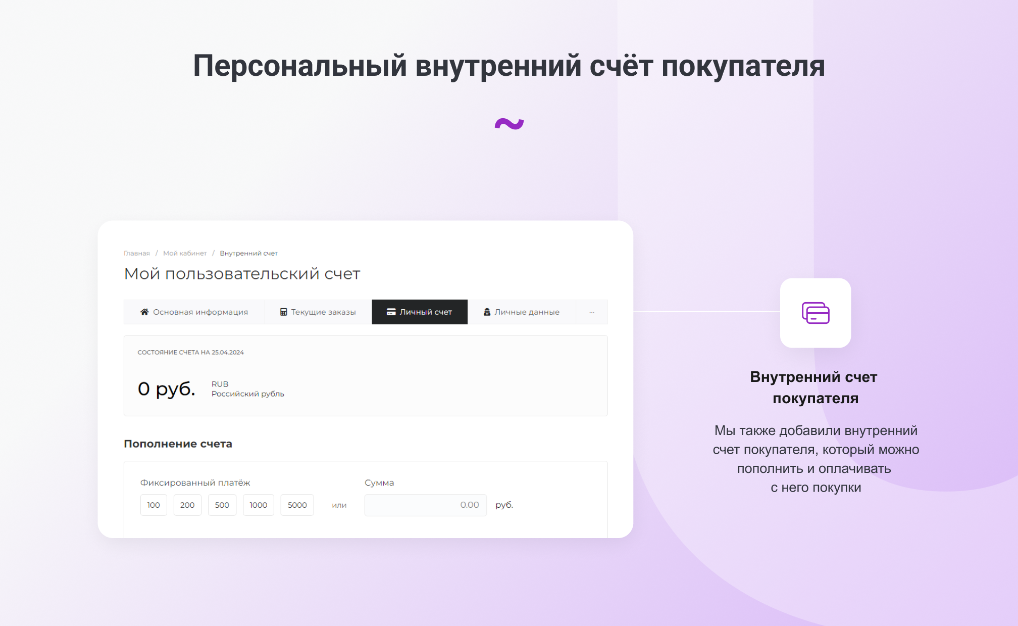 покупателя - мы также добавили внутренний счет покупателя, который можно пополнить