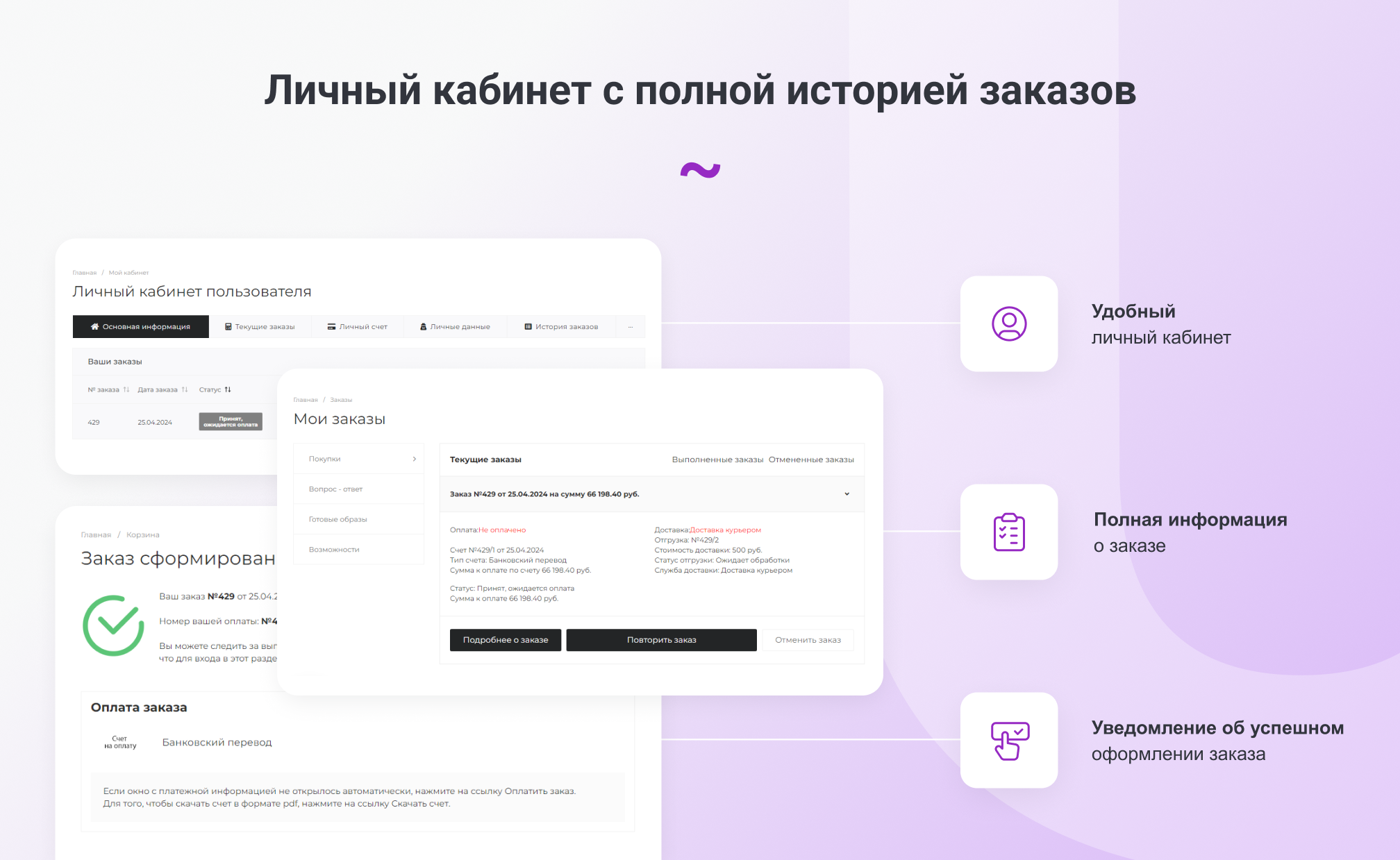 максимально быстро получать необходимые данные по статистике заказов. Удобный личный кабинет,