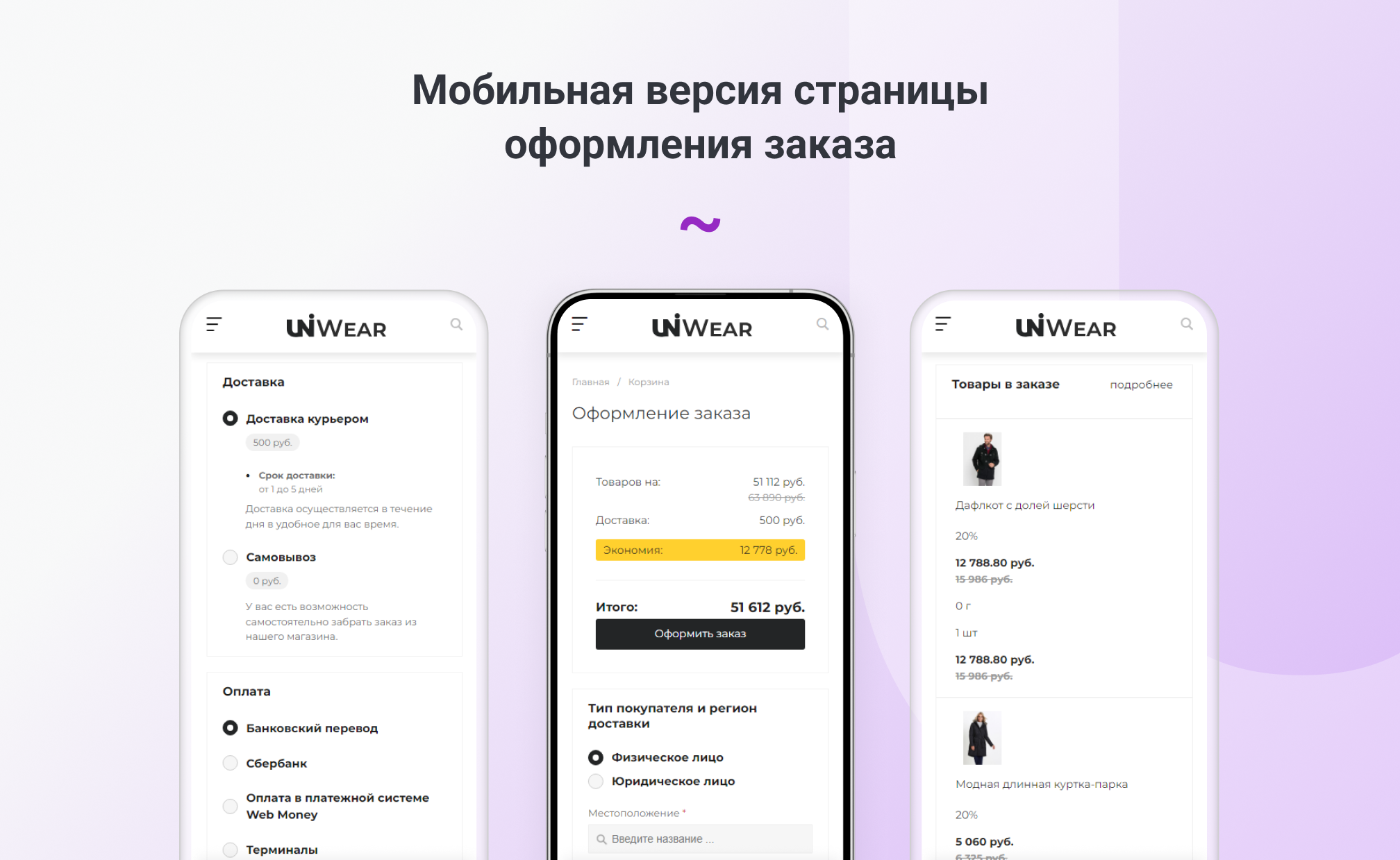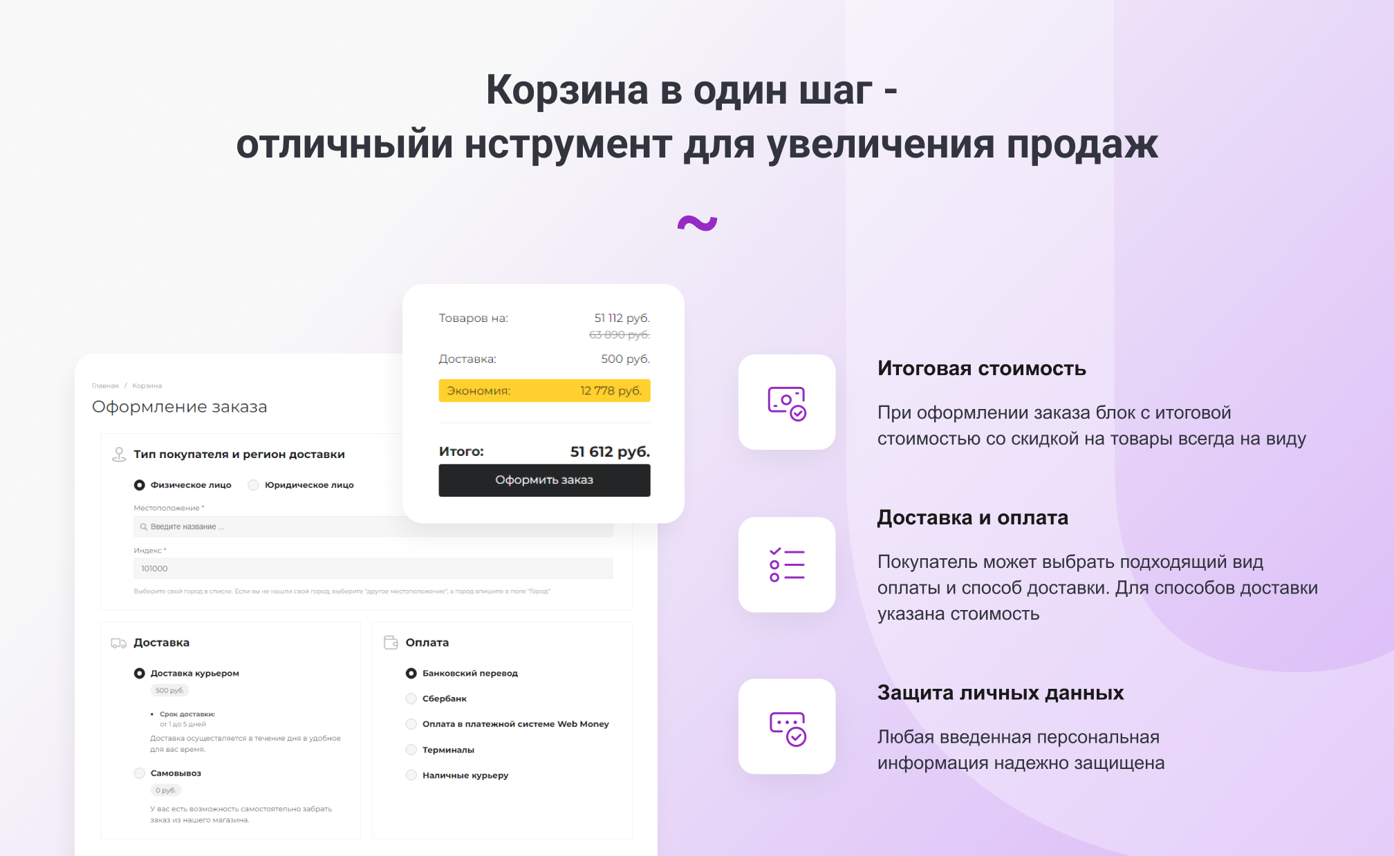 Пользователь не потратит много времени на оформление заказа и не уйдет с вашего сайта без покупки,