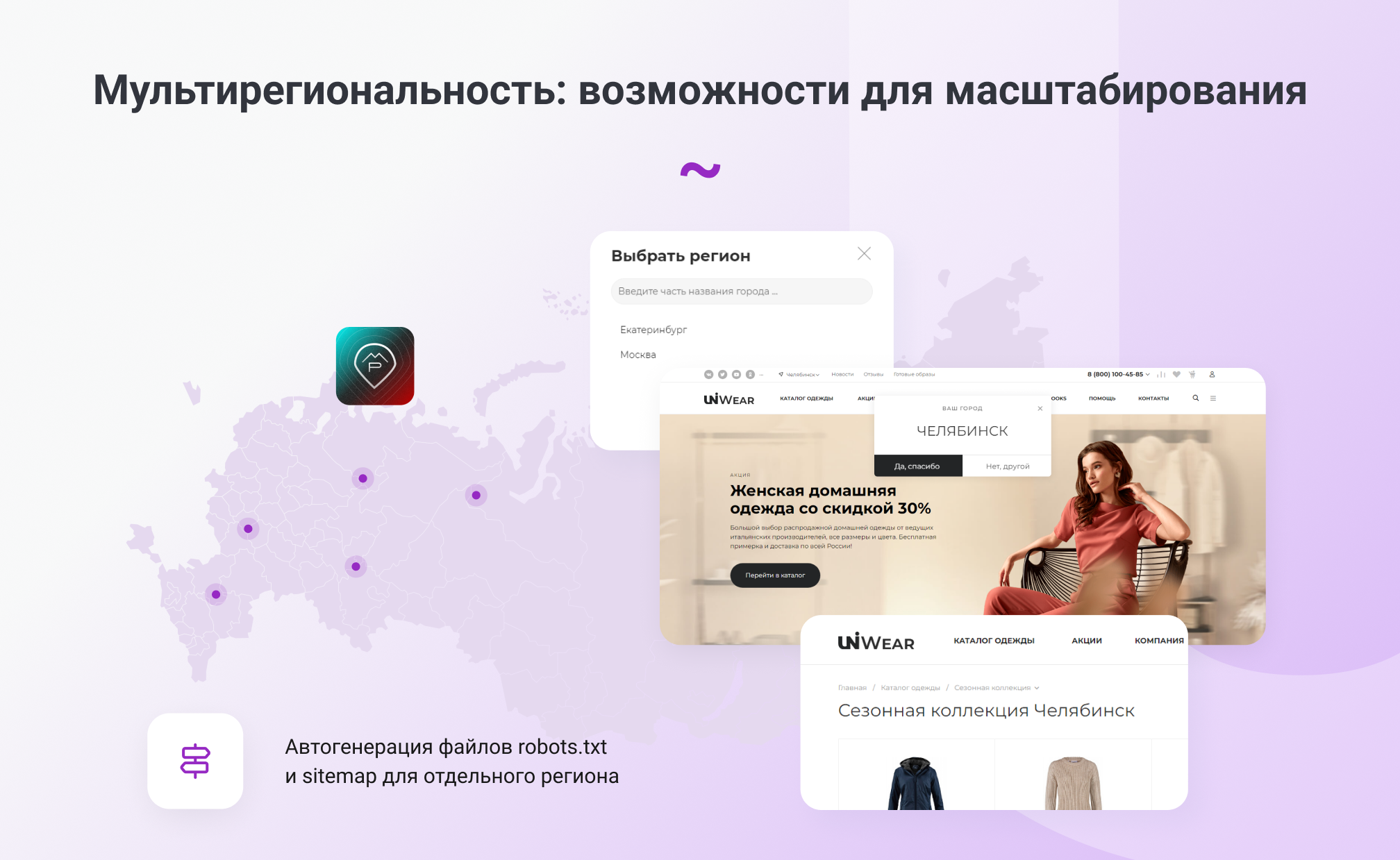 • Мультирегиональность - региональная сеть вашего сайта с продвижением в поисковиках
