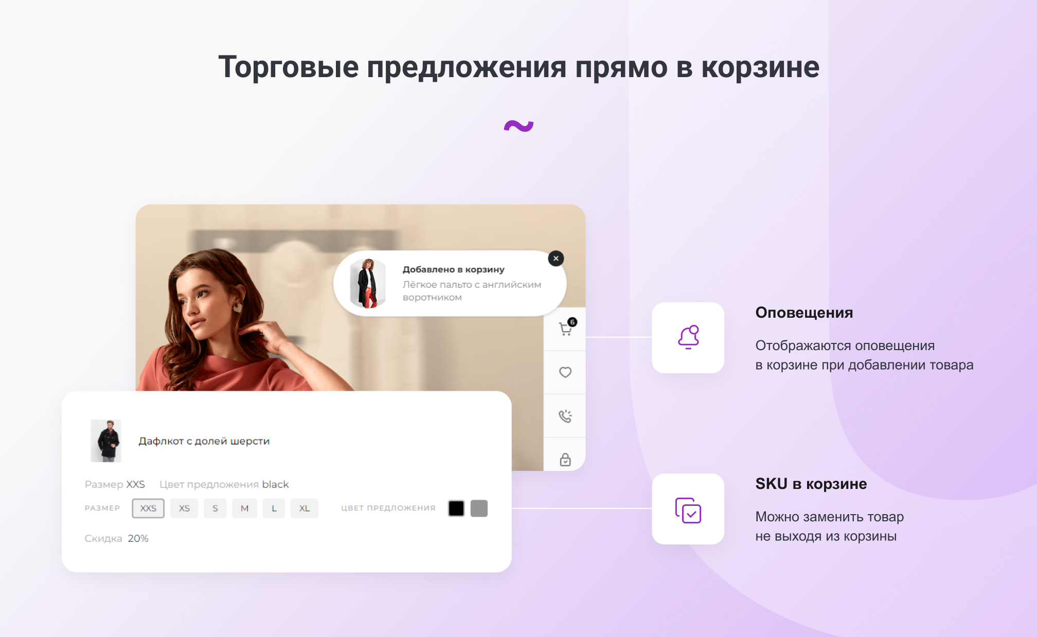 торговые предложения прямо в корзине. SKU в корзине - можно заменить товар не выходя из корзины.
