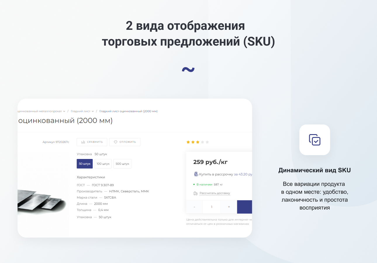 Динамический вид SKU, все вариации продукта в одном месте: