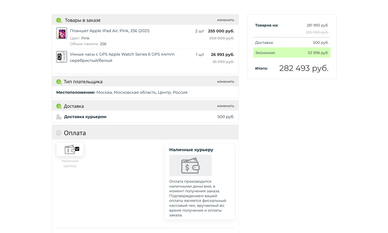 Оформление заказа позволяет за несколько шагов выбрать