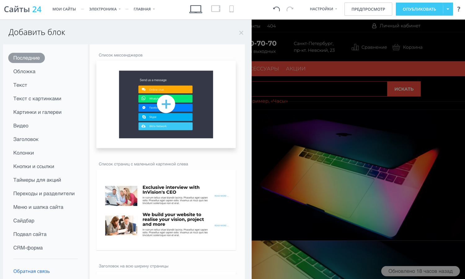 Интернет-магазин «Крайт: Электроника.Store24» работает на «Сайтах 24» —
