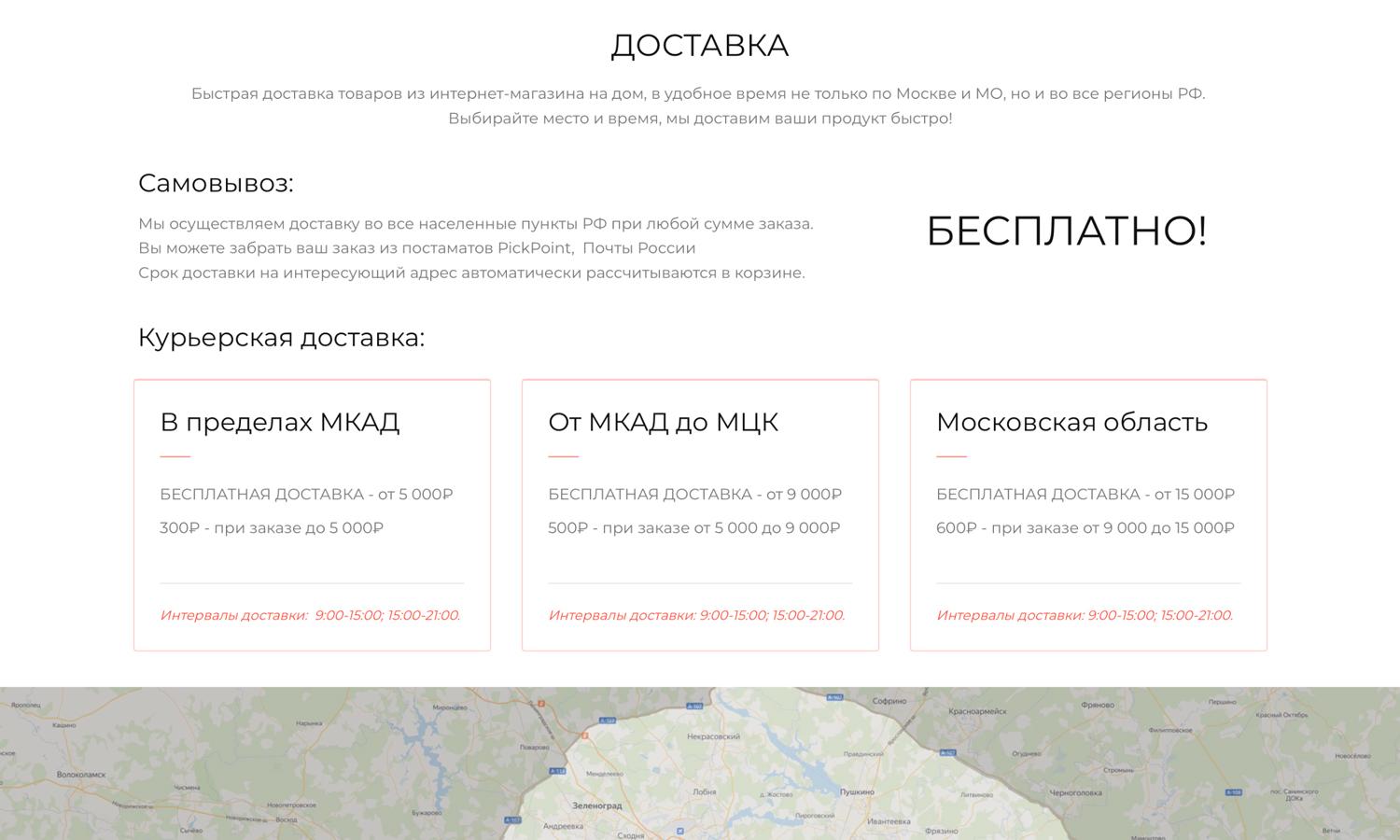 информацию об условиях и способах доставки и оплаты.