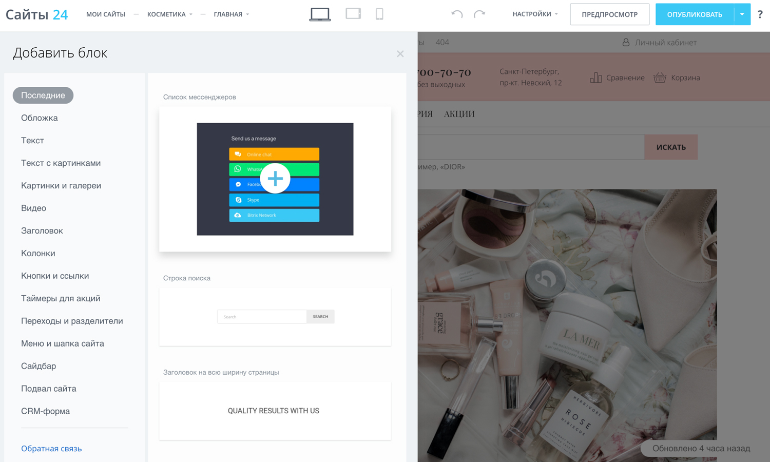 Интернет-магазин косметики и парфюмерии «Крайт: Косметика.Beauty24» с конструктором