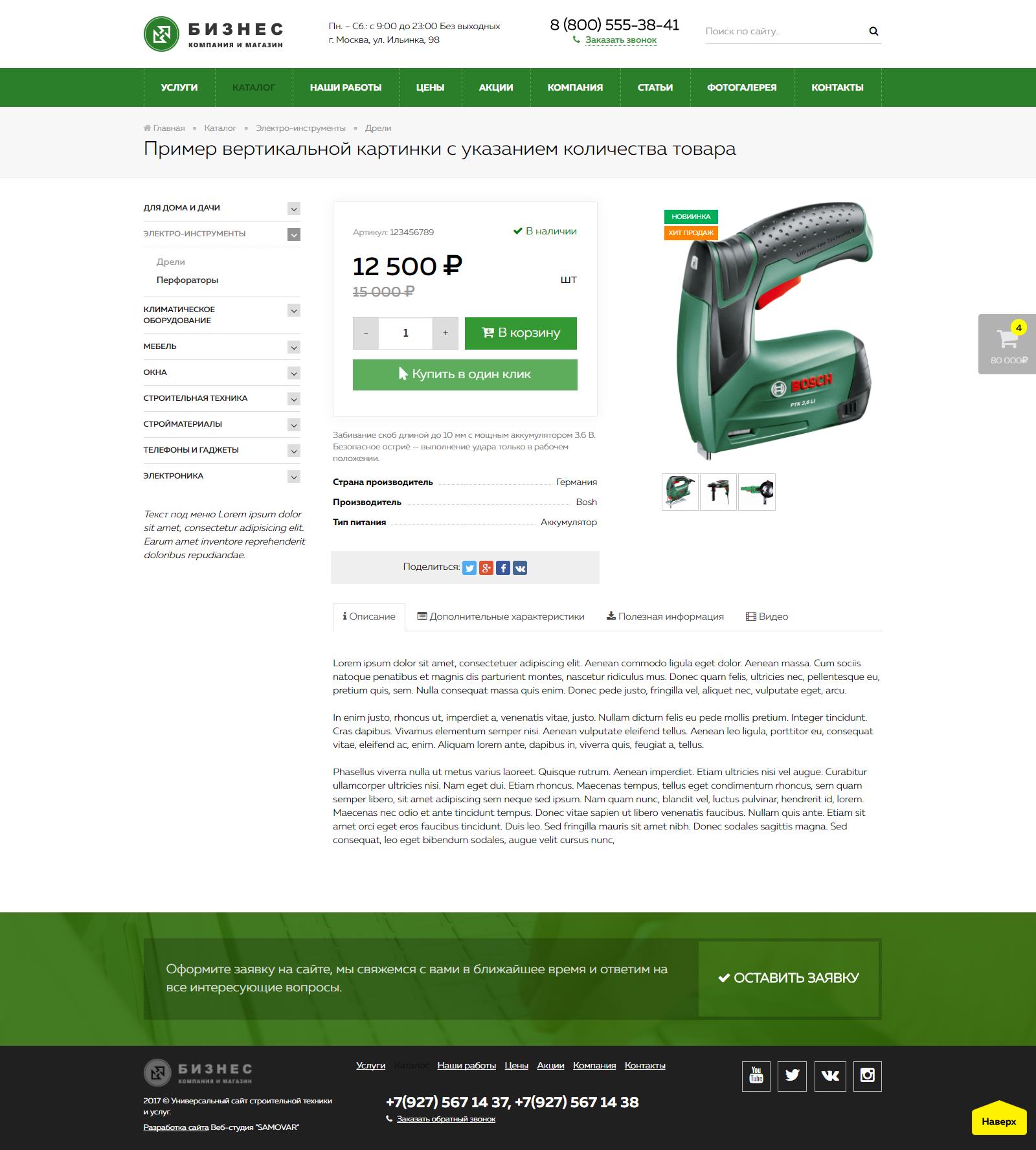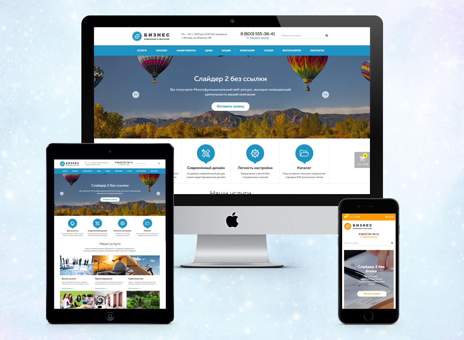 | "Готовый универсальный сайт" - коробочное решение с интернет магазином для создания корпоративного сайта для различных компаний. |