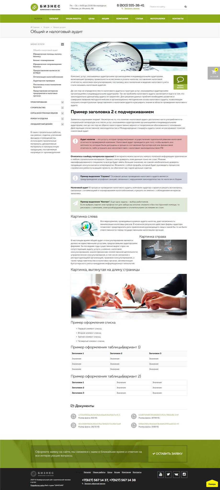 - встроенный калькулятор на сайте позволяет рассчитать стоимость работ, сохранить их и распечатать