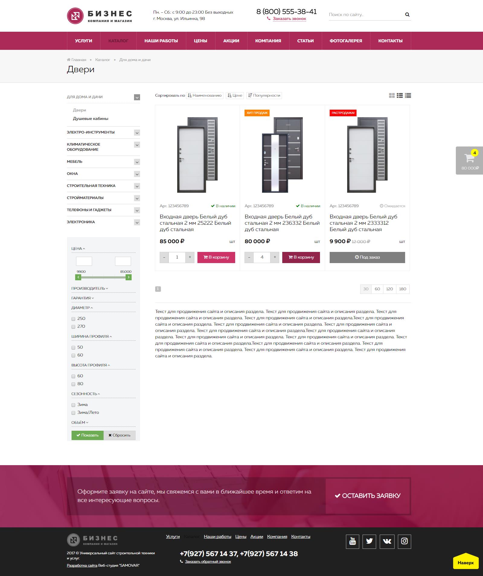 - каталог и корзина