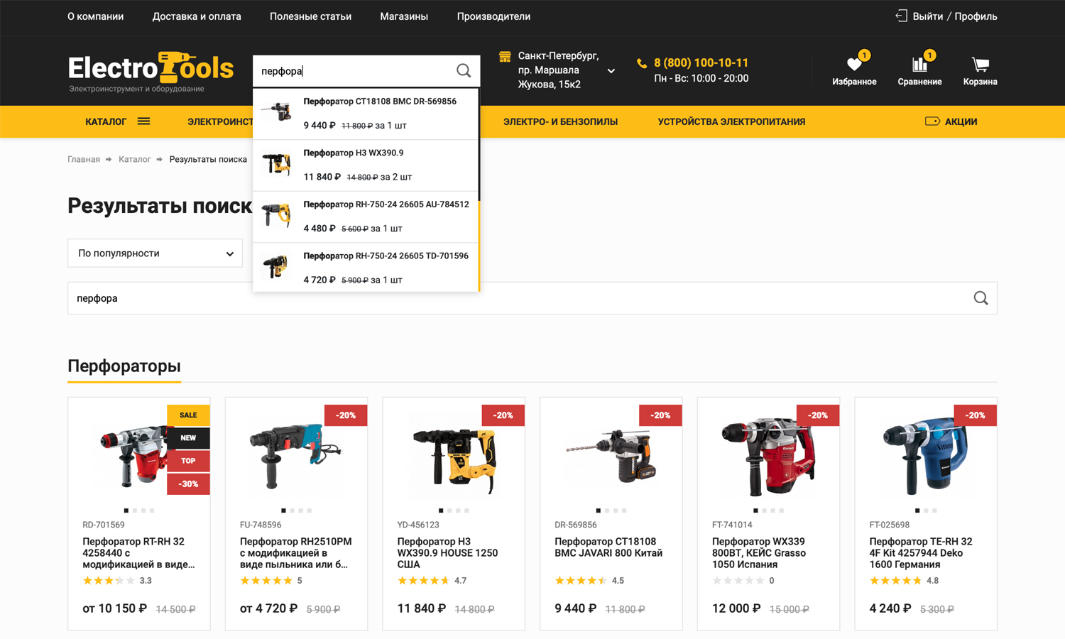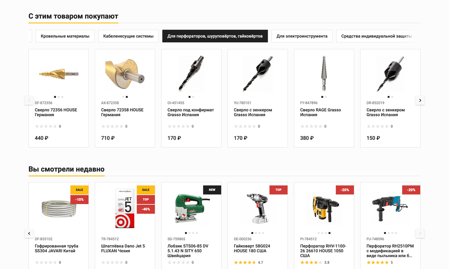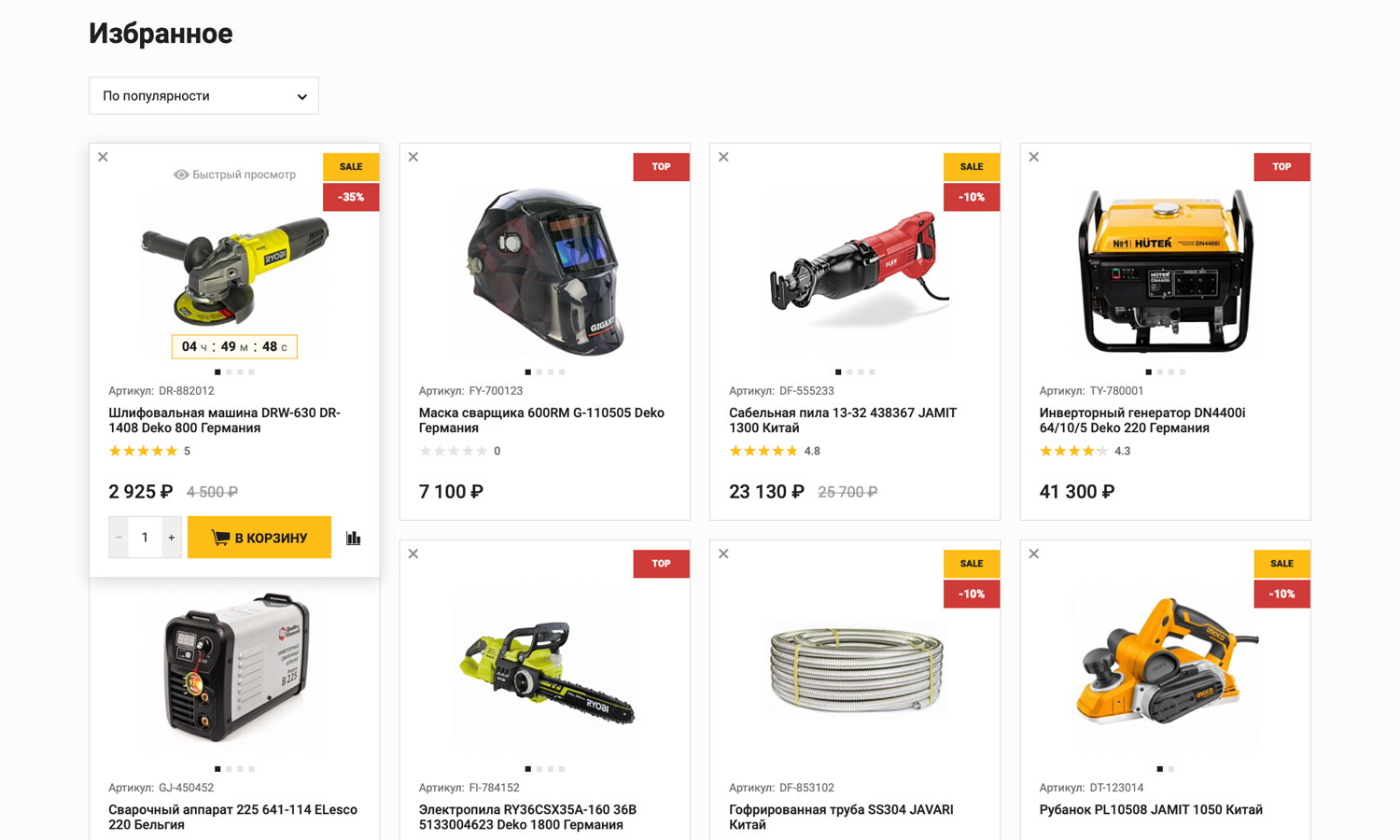 или просто сгруппируйте популярные позиции по разделам (например, «Лучшие перфораторы»).