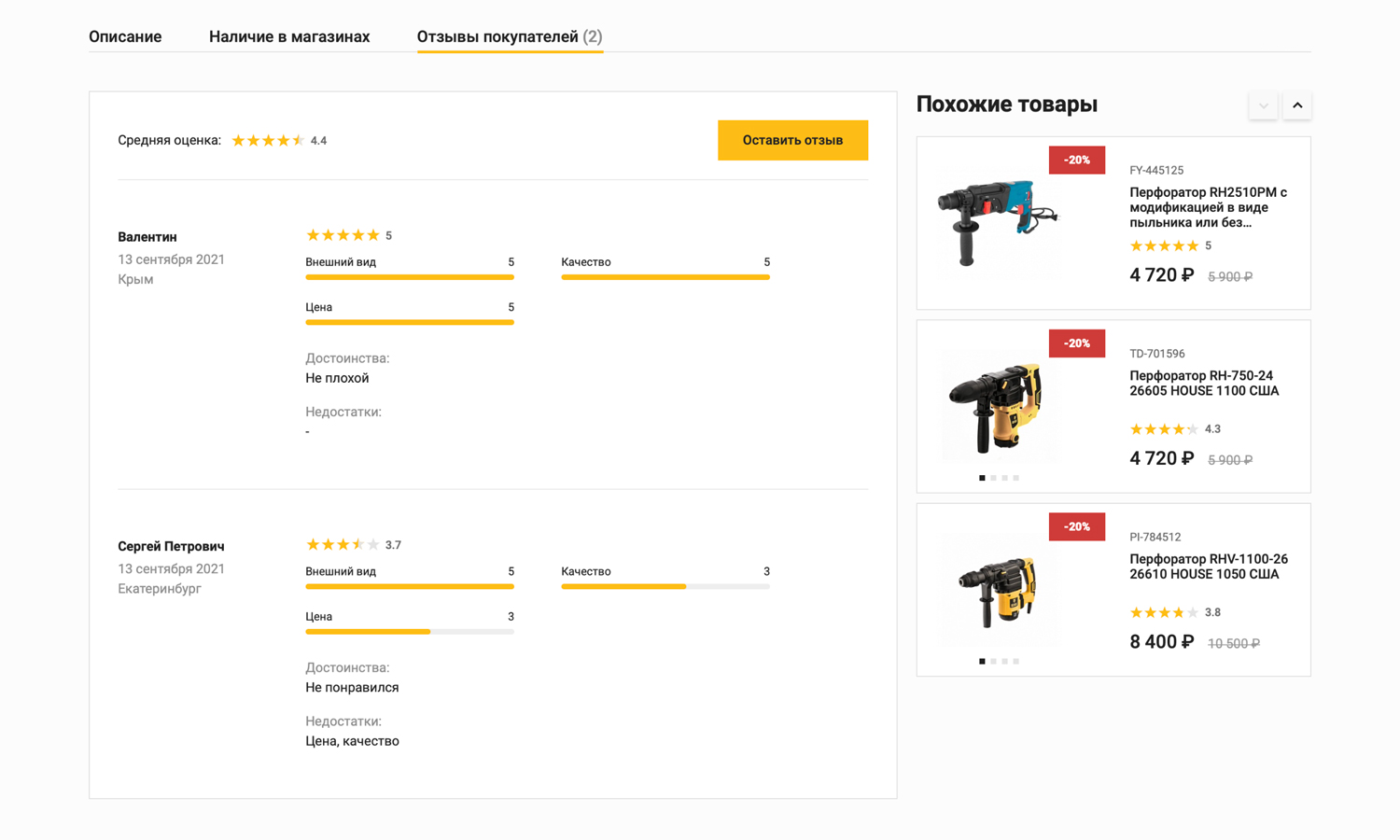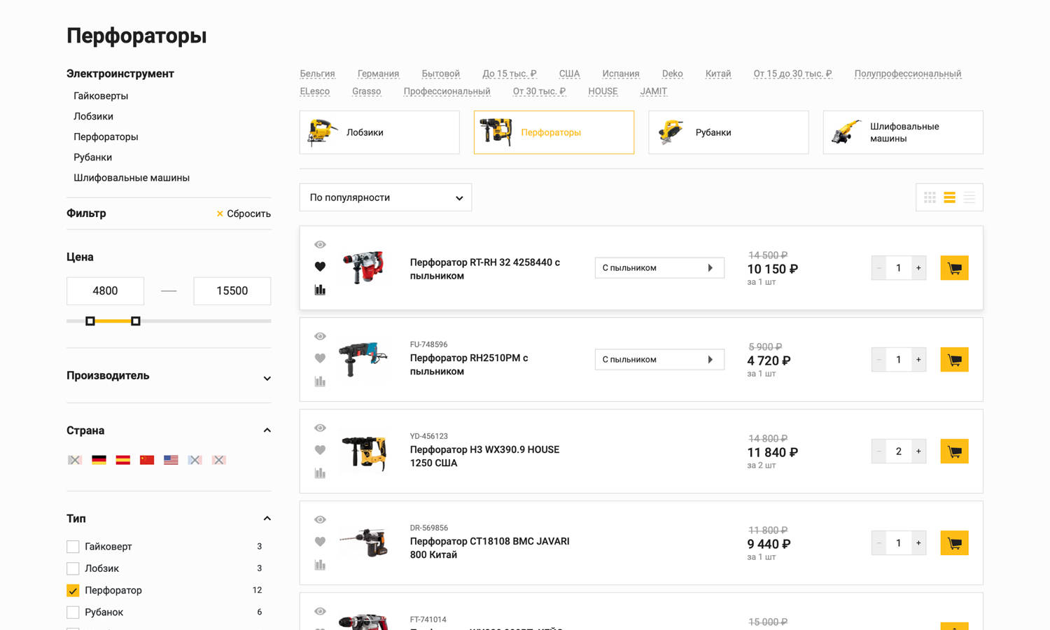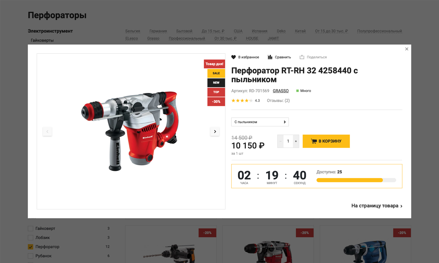 или просто сгруппируйте популярные позиции по разделам (например, «Лучшие перфораторы»).