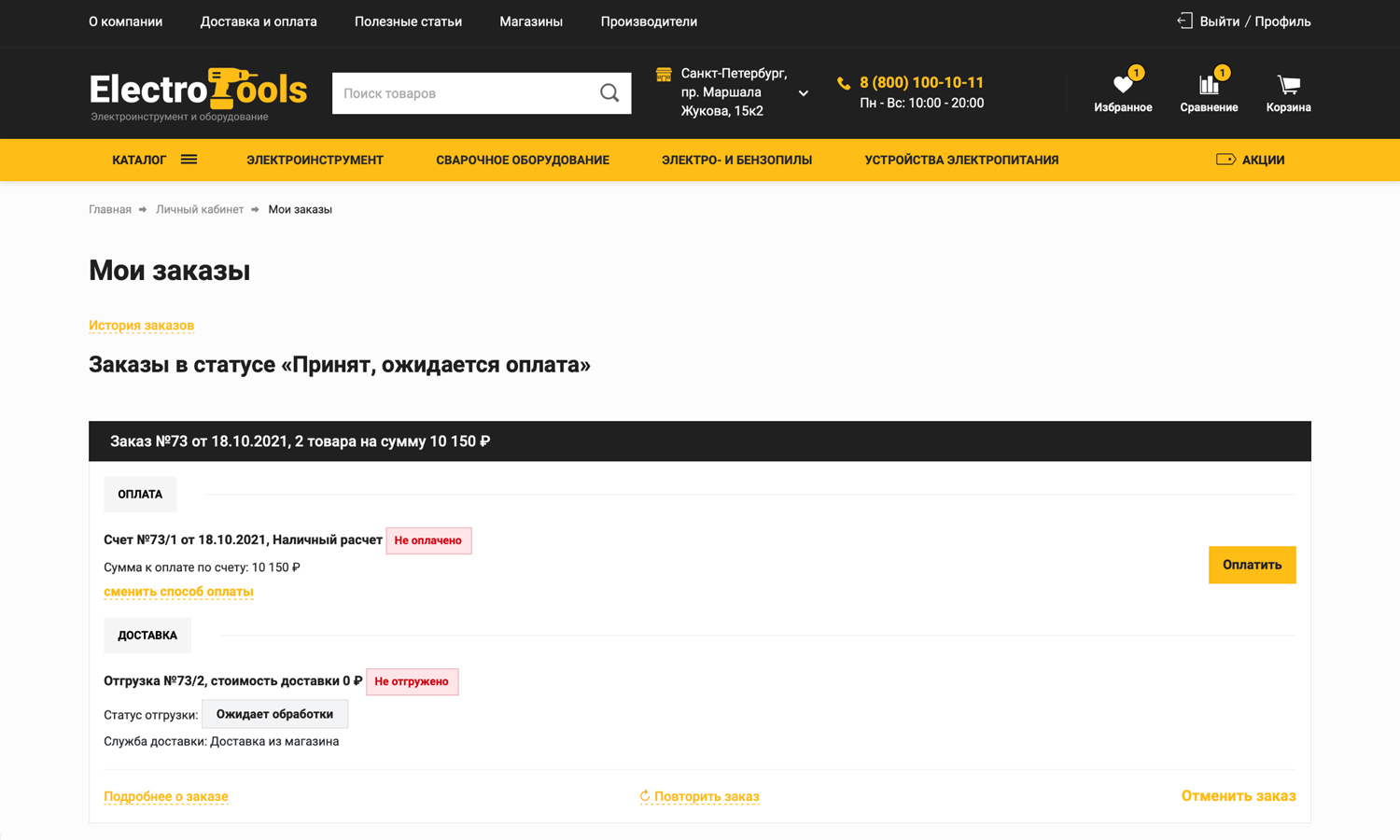 Личный кабинет даёт возможность следить за статусами заказов, изменять способ оплаты, отменять