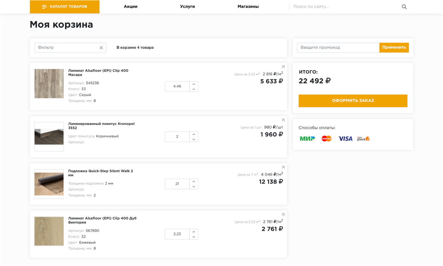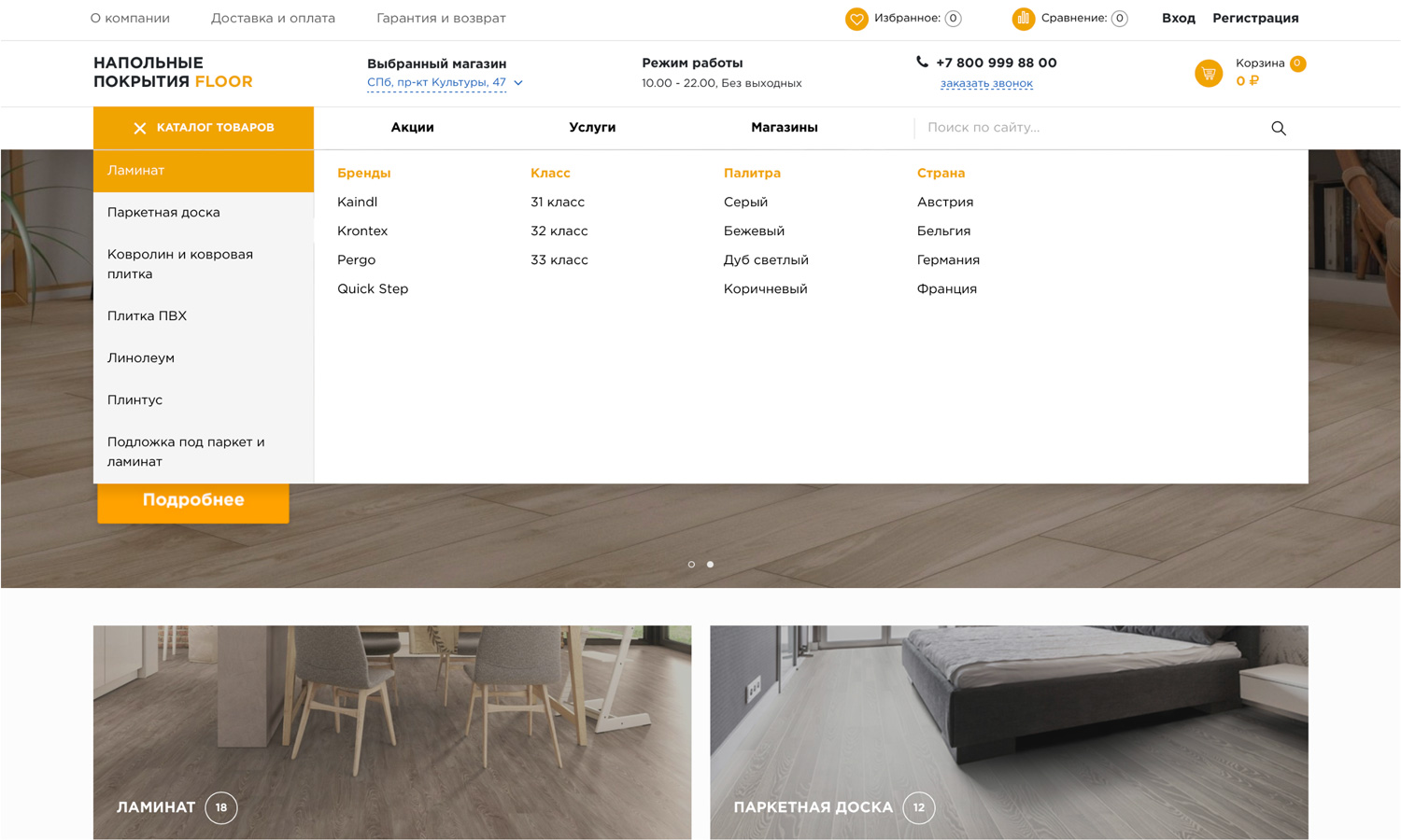 Интернет-магазины напольных покрытий, как правило, имеют несколько офлайн точек.