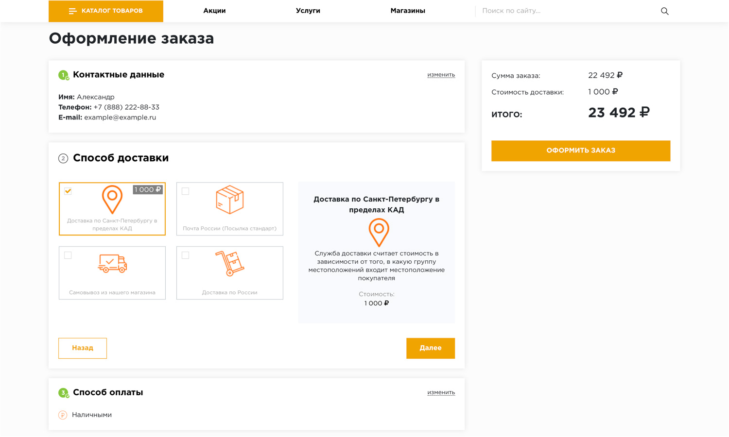 Оформление заказа позволяет за несколько шагов выбрать