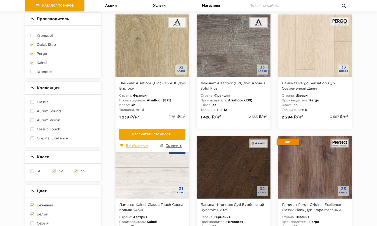 мы реализовали возможность сравнения товаров в рамках категории, ведь не правильно сравнивать ламинат с плинтусом.