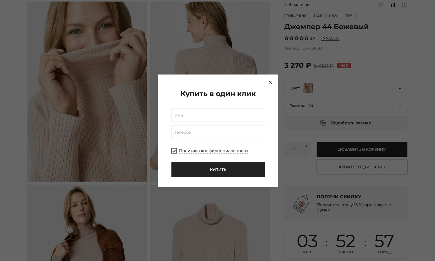 Товарная карточка, которую вы хотели. Создана по образу успешных fashion-магазинов.