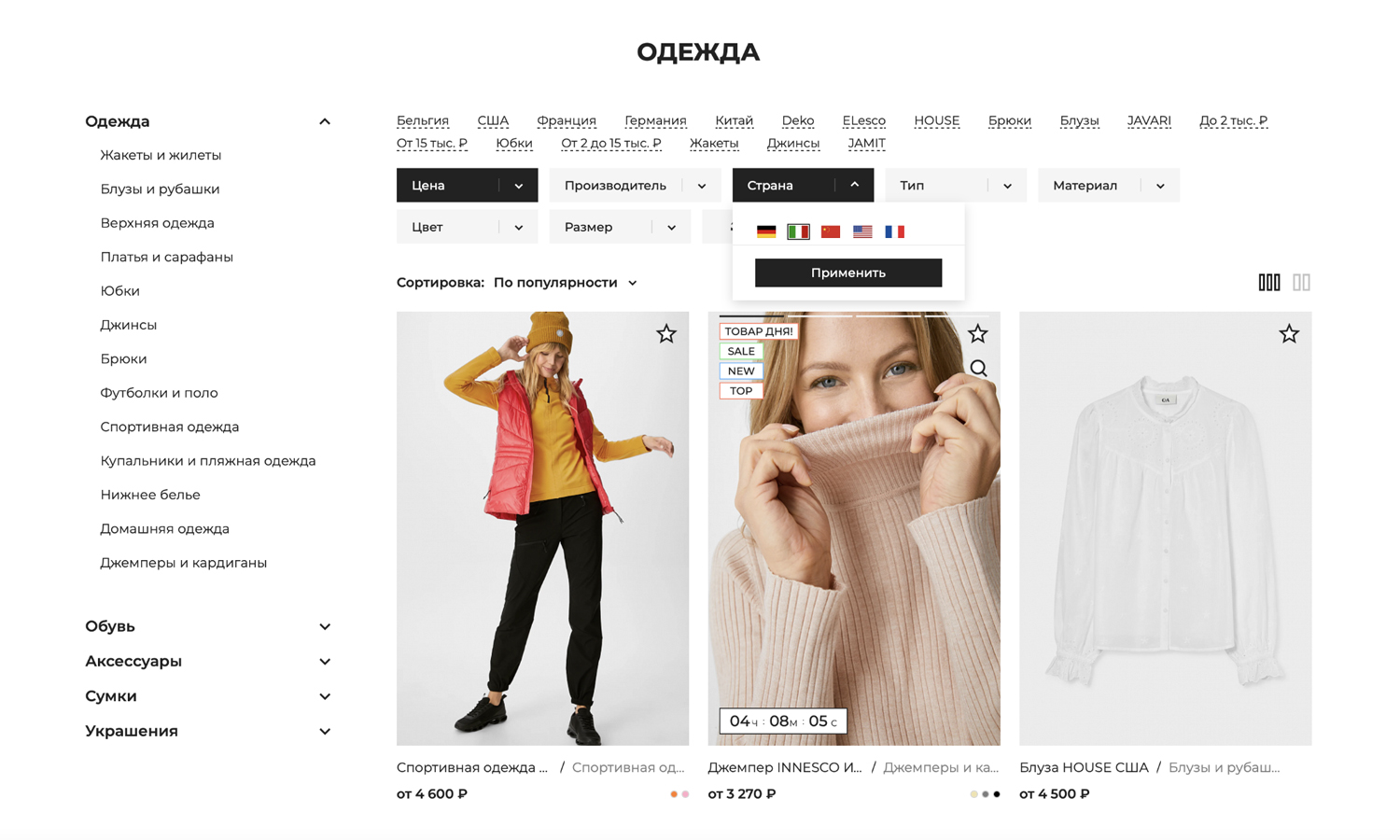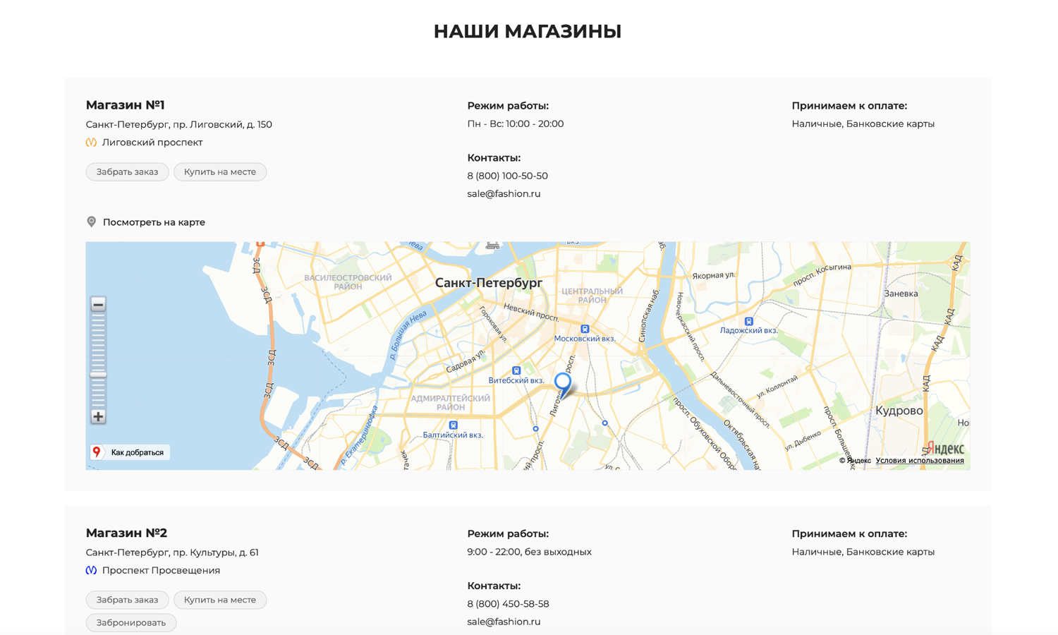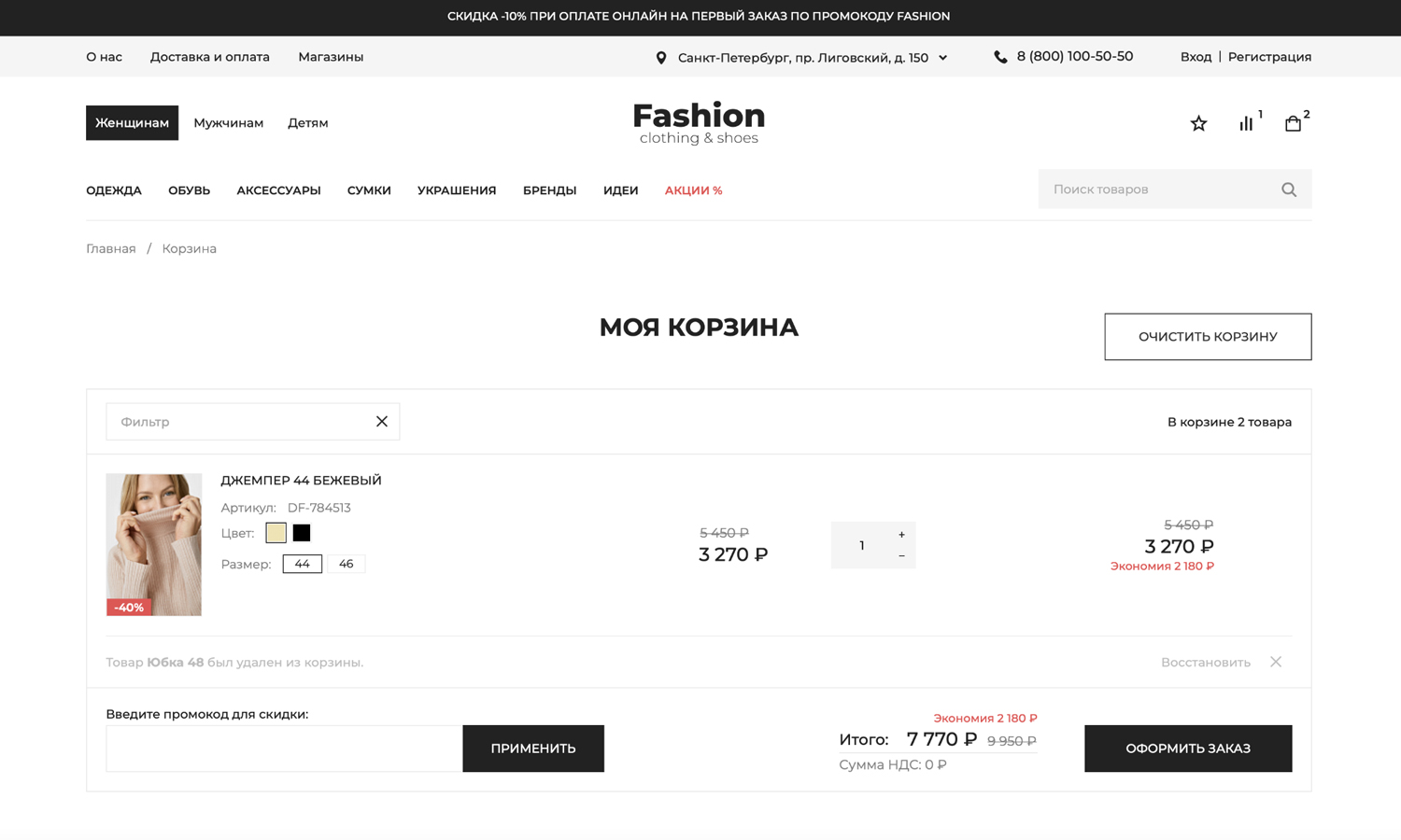 Ключевой особенностью fashion-магазина является возможность разделения каталога на женский,