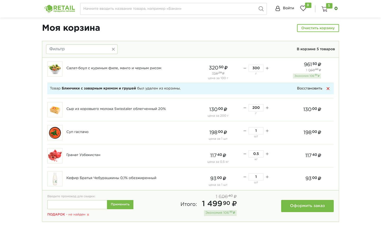 Интернет-магазин продуктов питания обязан иметь специальную корзину,