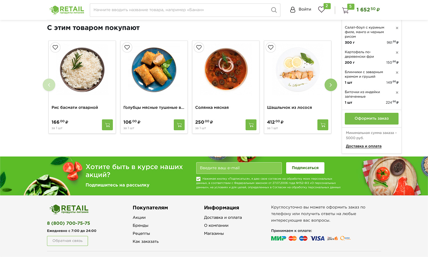 ![]() С помощью отраслевого решения «Крайт: Продукты питания.Retail» вы сможете запустить интернет-магазин продуктов питания, доставки еды, чая и кофе, овощей, фруктов и ягод, готовой еды и кулинарии, рыбы и морепродуктов, мяса и птицы, деликатесов, доставки роллов и суши, доставки пиццы, доставки бургеров, доставки шашлыка, воды и напитков, алкоголя, молока и сыра, круп и макарон, детского питания, специй и приправ, орехов и сухофруктов, меда и варенья, сладостей, тортов, десертов и кондитерских изделий, пирогов и выпечки, мармелада, мороженого, замороженных продуктов, грибов, здорового питания. Хотите запустить успешный интернет-магазин? или позвоните 8 (800) 555-13-01 (бесплатно) |