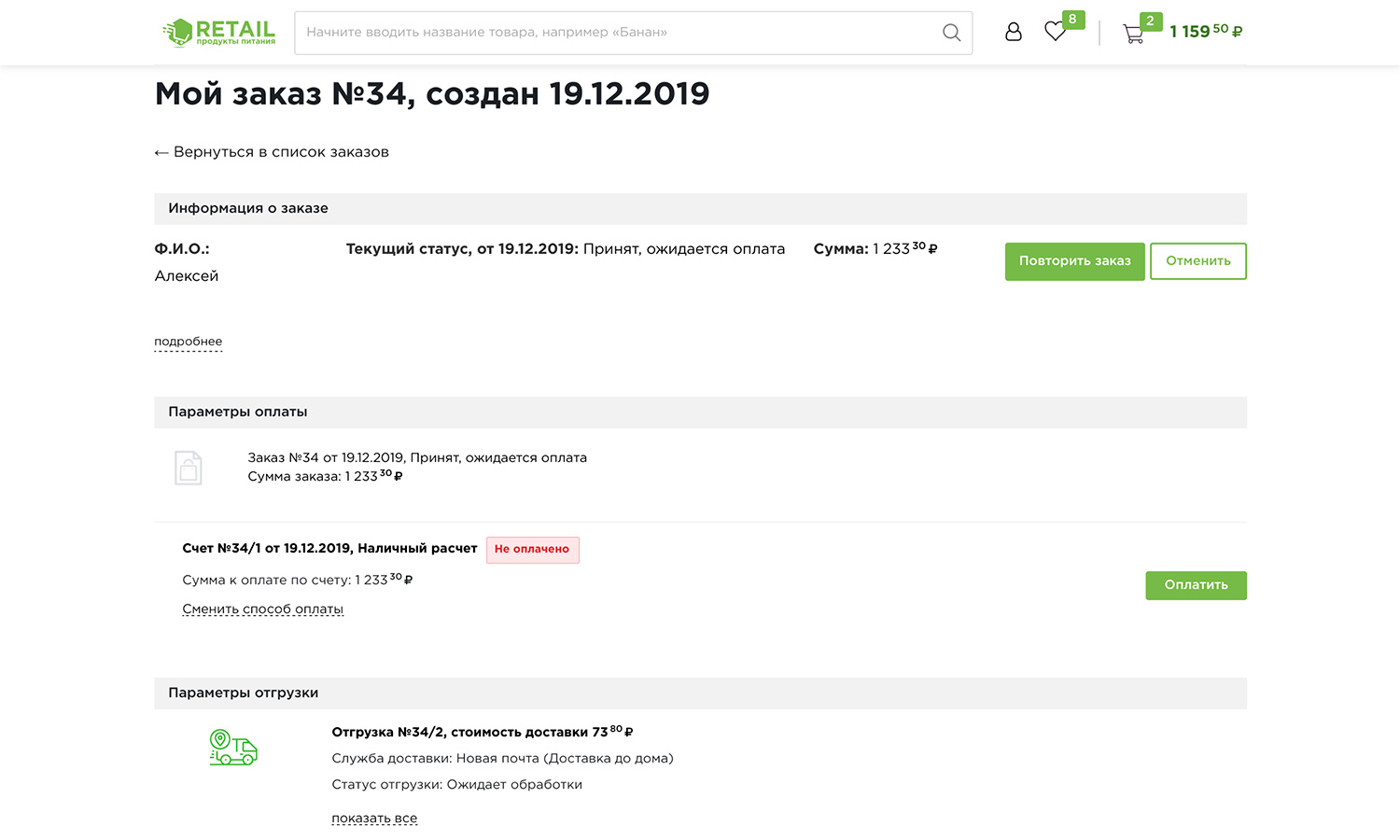 отменять и повторять заказы. А наличие функционала «Личный счет»* позволит вам