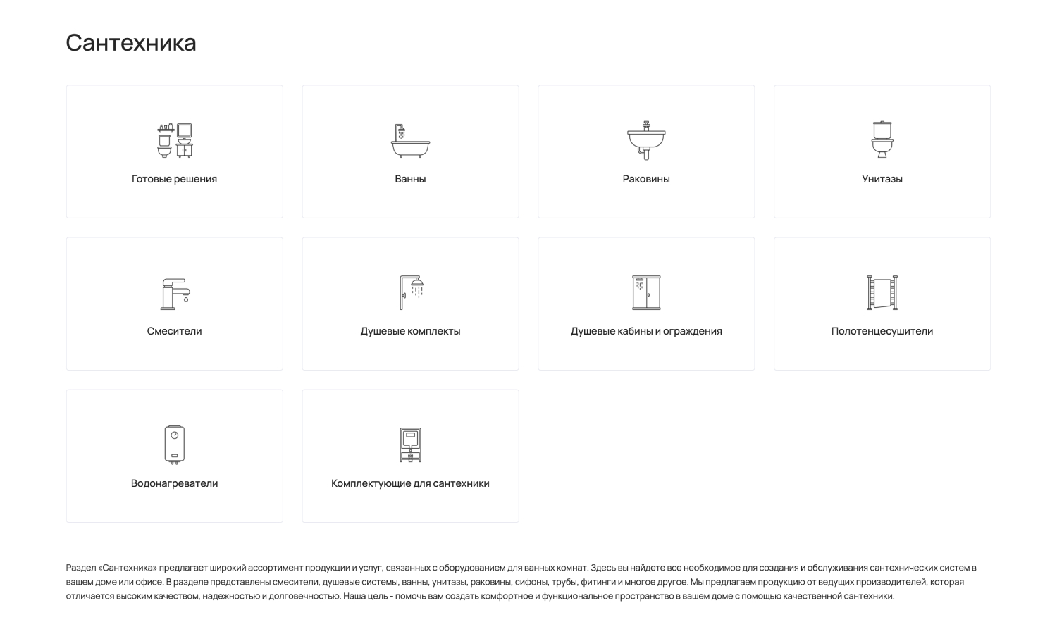 С помощью отраслевого решения «КРАЙТ: САНТЕХНИКА.SPECIAL» вы сможете запустить успешный интернет-магазин сантехники, оборудования, отопительных систем, водоснабжения, климатической техники, инженерной сантехники, мебели и мебельных комплектов для ванной комнаты, керамической плитки, товаров для клининга, товаров для дачи, товаров для бани и сауны, смесителей, ванн, душевых кабин, раковин, унитазов, водонагревателей, полотенцесушителей, теплых полов, кондиционеров, вентиляторов, очистителей и увлажнителей воздуха, котлов, радиаторов, обогревателей, каминов и печей, парогенераторов, вентиляции, арматуры, насосов, труб, фитингов, счетчиков воды, фильтров для воды, кулеров для воды, керамогранита, мозаики, зеркал, садовой техники, систем полива, шлангов и комплектов для полива, моек высокого давления, биотуалетов, бассейнов, фонтанов.