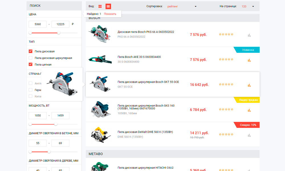 (вы сможете самостоятельно указать один или несколько параметров по которым будут подбираться товары)
