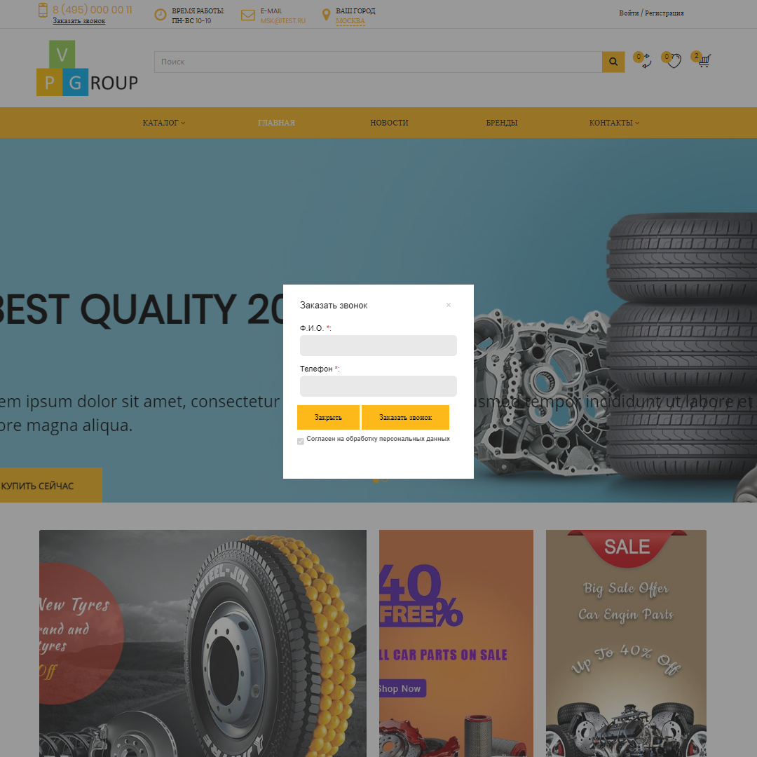 - Функцию "Заказать звонок".