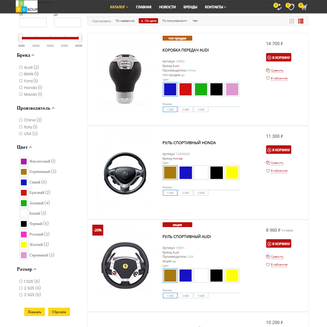 Pvgroup.Auto - в эту группу входят интернет-магазины, которые специализируются на продаже автозапчастей и автомобилей, а также для автосалонов.
