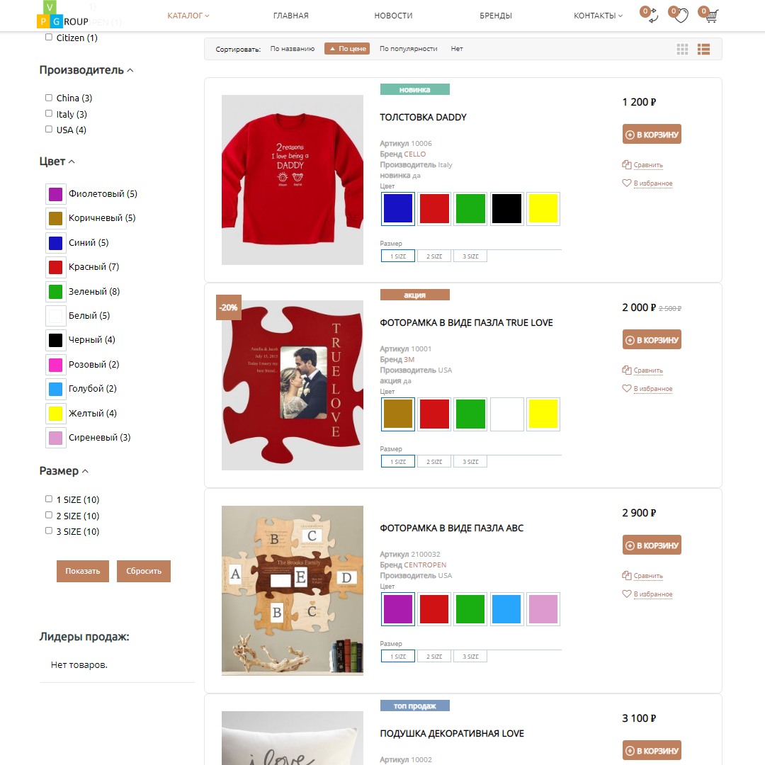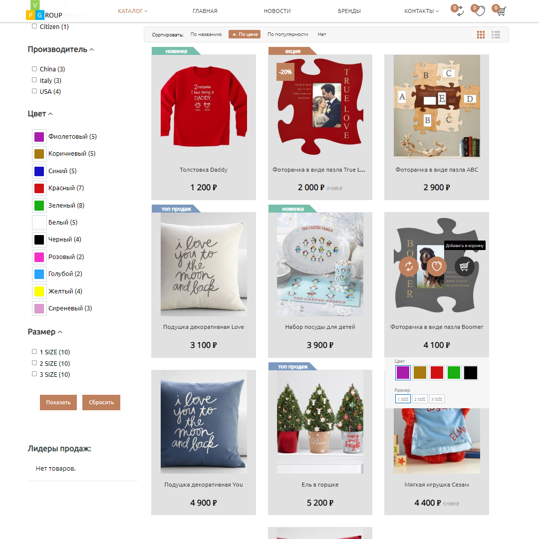 В интернет-магазинах от Pvgroup каталог товаров